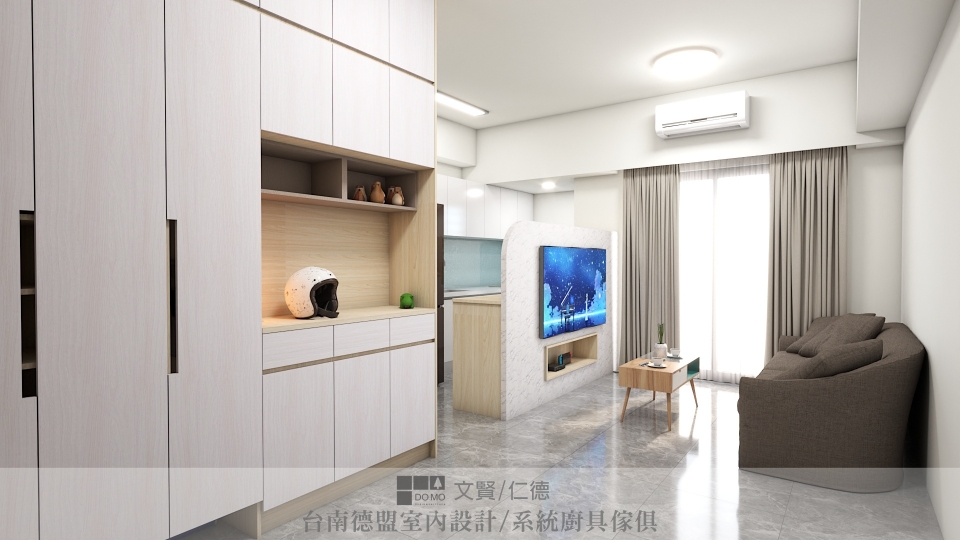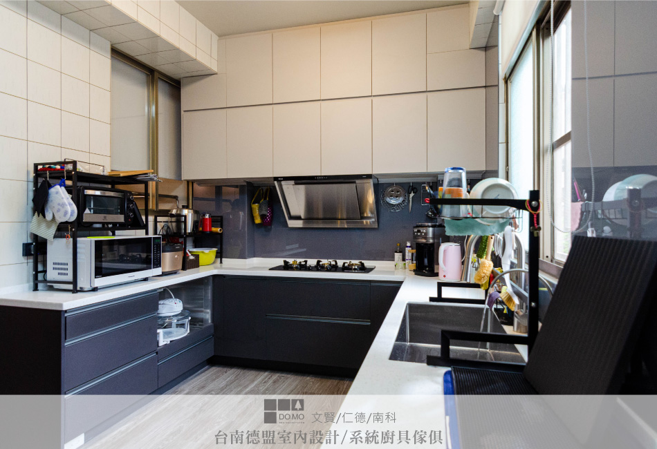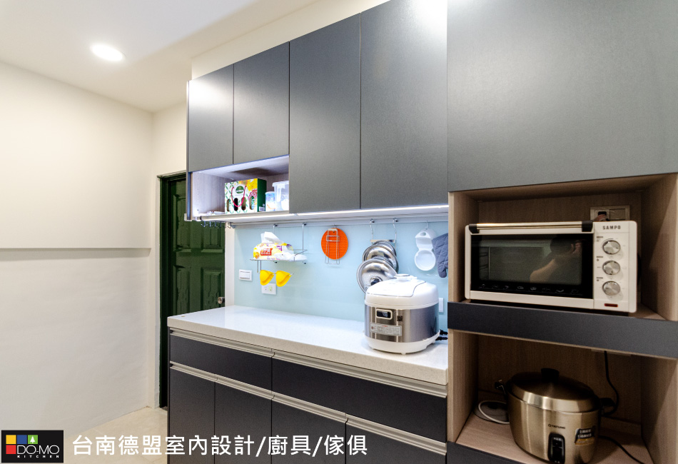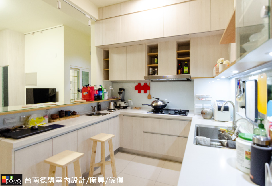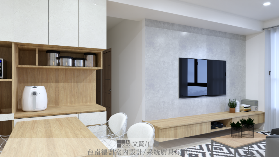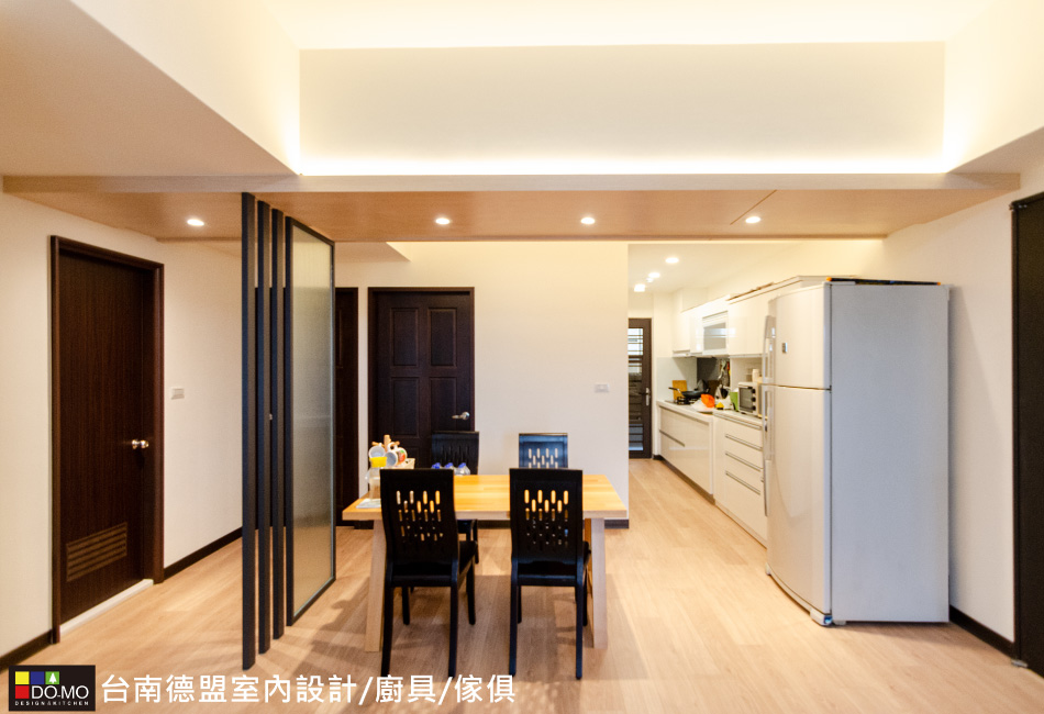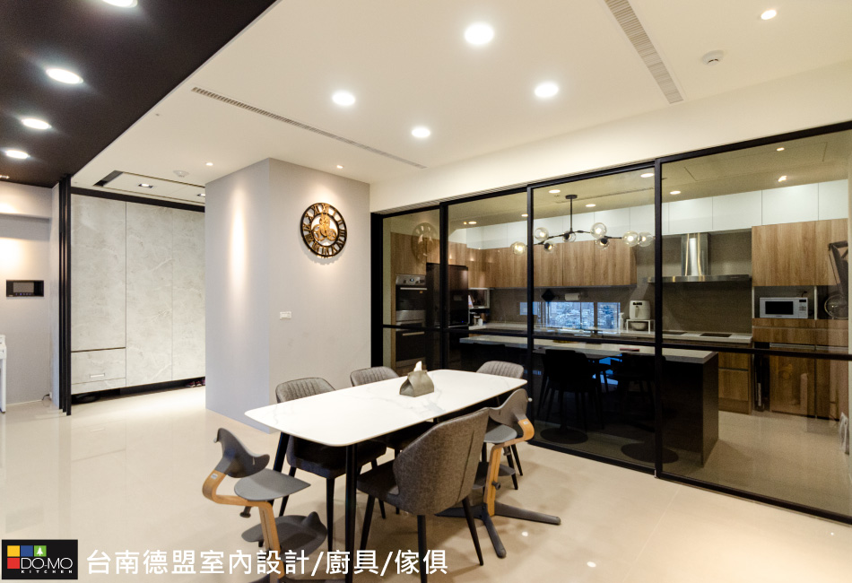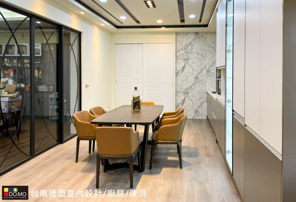 為簡約風格的餐廚空間賦予強化收納機能的居家領域。