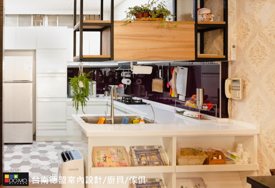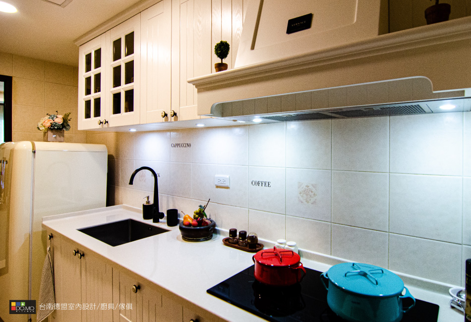 想要溫馨放鬆的的感覺鄉村風格絕對是最好的選擇之一,主要以白色搭配著鵝黃色、水藍色、蘋果綠...等溫暖的色系,凸顯自然的色調並也能放大空間;開放式的收納櫃在擺放物品之餘也能陳列互相搭配的廚具們,滿足收納與展示的需求;鄉村風的純樸和清新氣息也增添了居家的溫馨感與浪漫的想像~