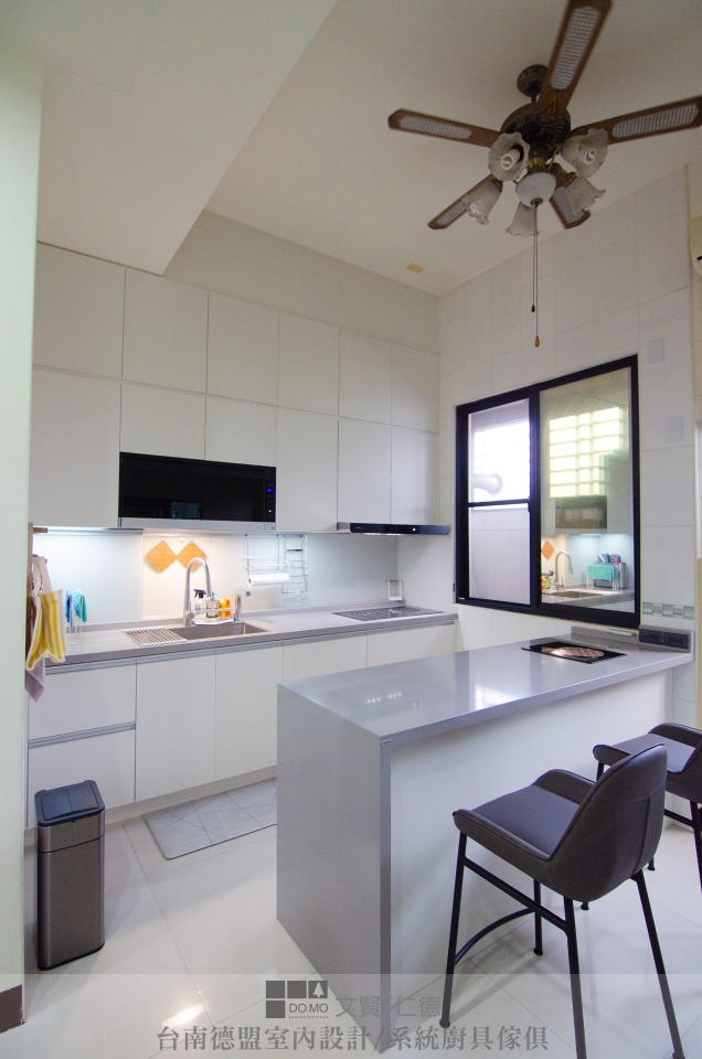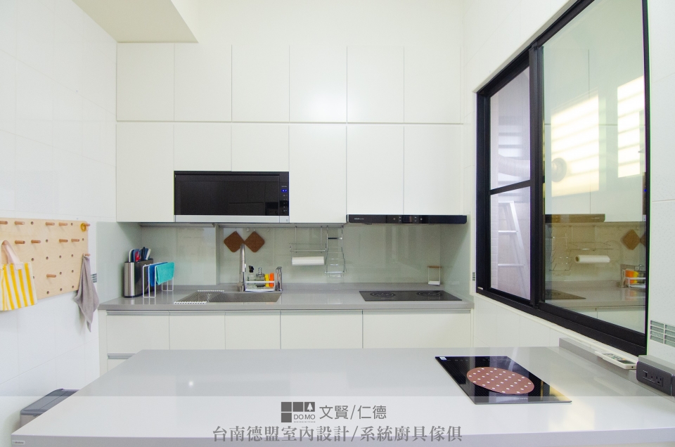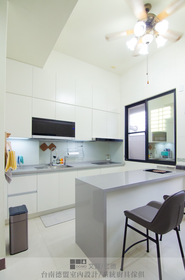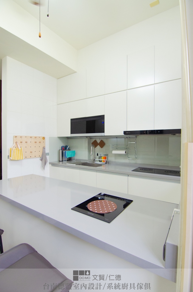 而大量留白的選擇,讓容易顯得紛亂的廚房可以保持一致性,即便物品較多,看起來也能保有簡淨整齊感,更別說白色更方便清潔整理,美感與功能性並存!