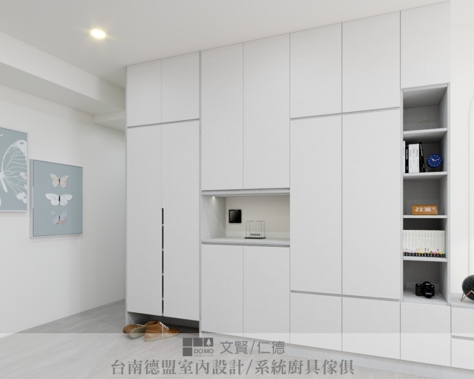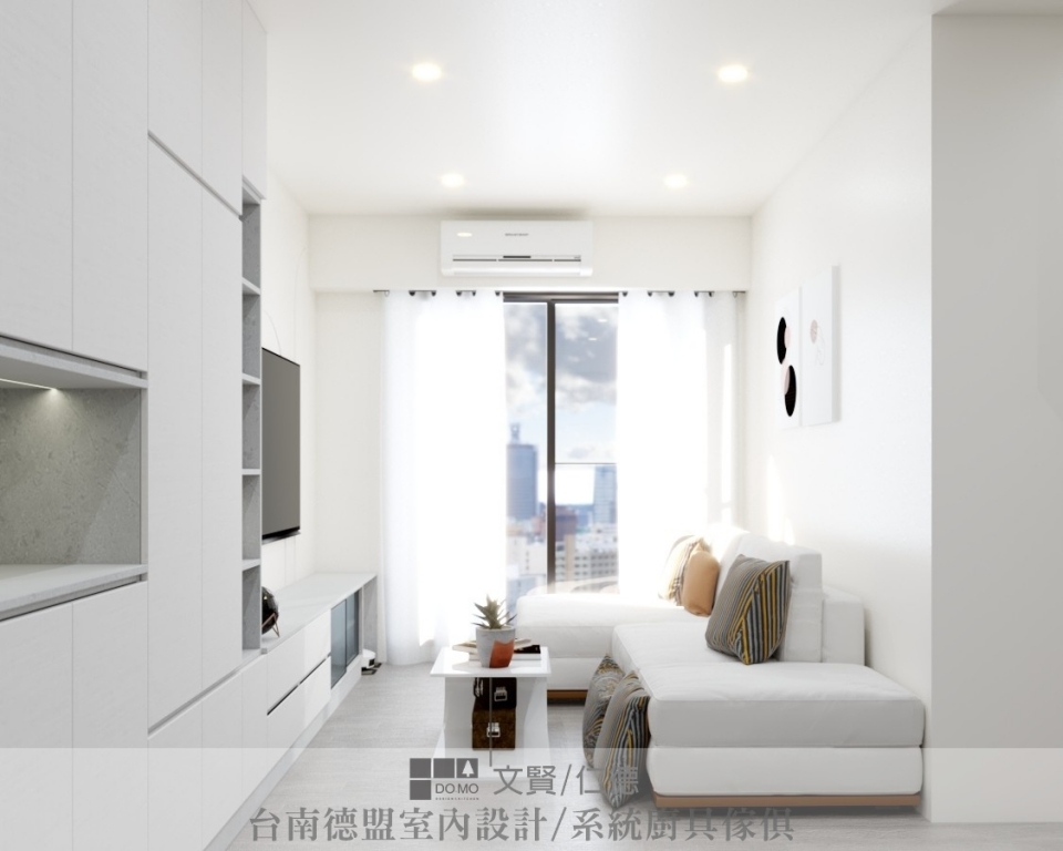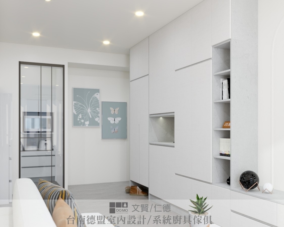 施作項目 ⏩ 室內設計、系統家具、玻璃鐵件推拉門、臥榻、收納系統床架、客廳、臥室、廚房