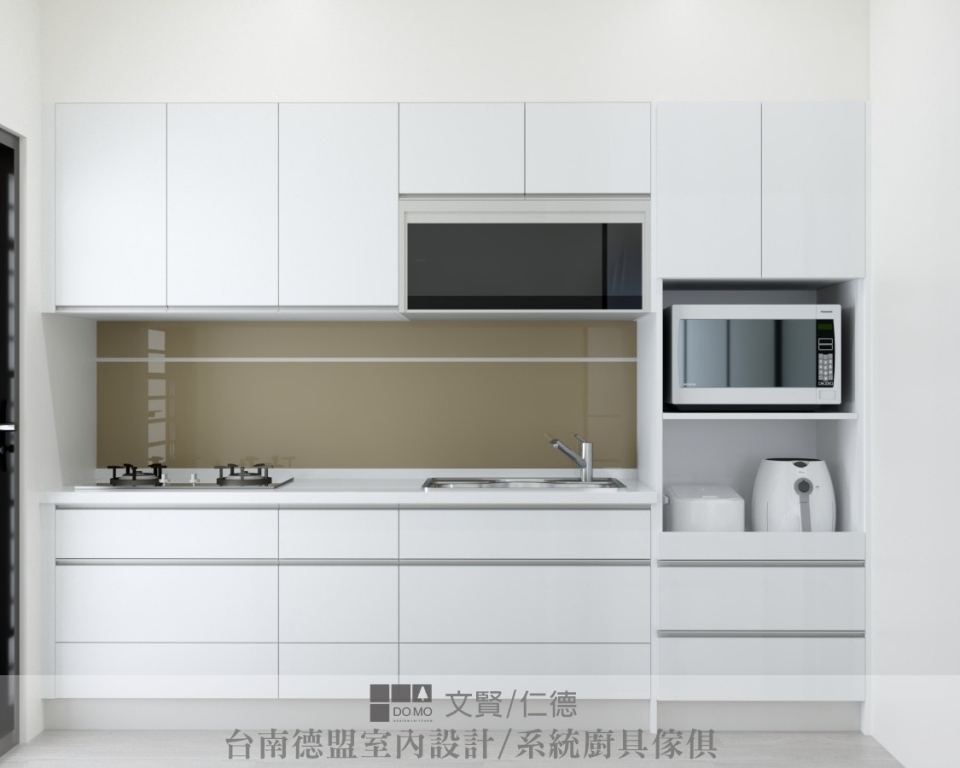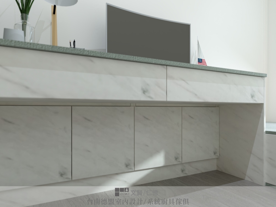 主要材料 ⏩ EGGER-日本F4星級塑合板、奧地利BLUM緩衝後鈕、烤漆玻璃、結晶鋼烤、人造石