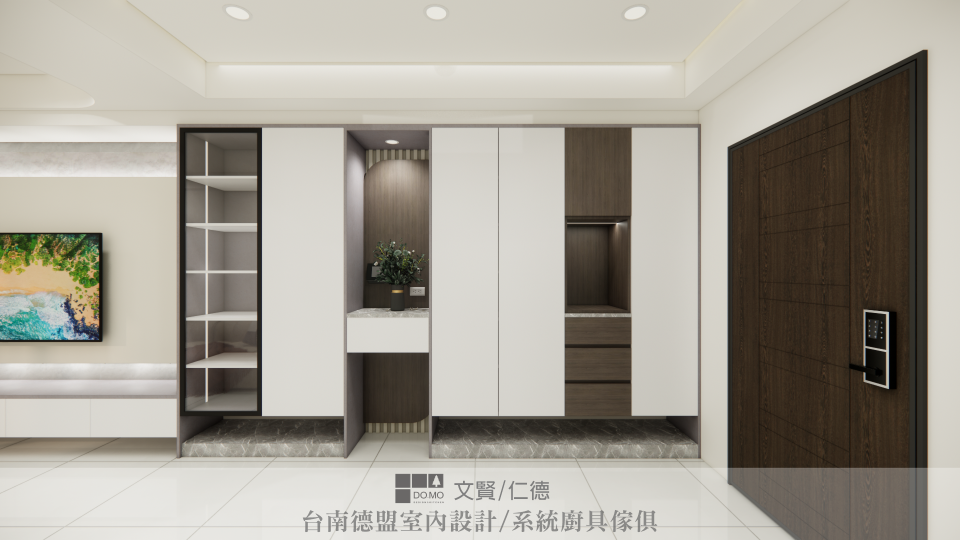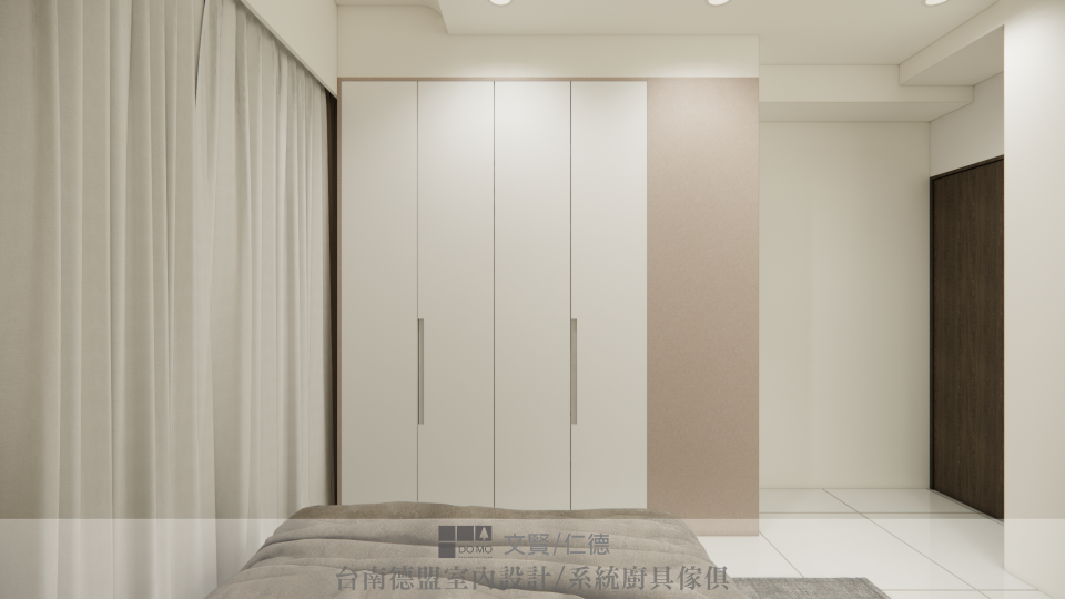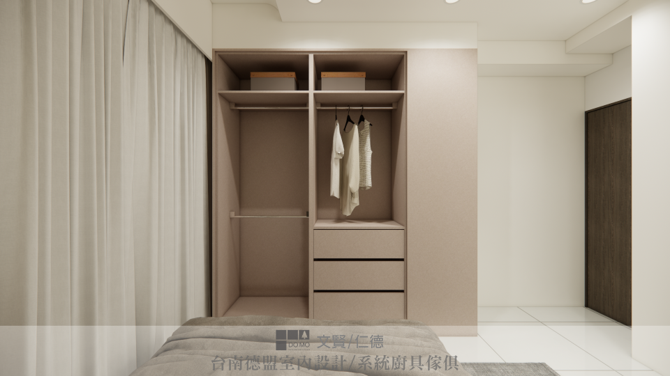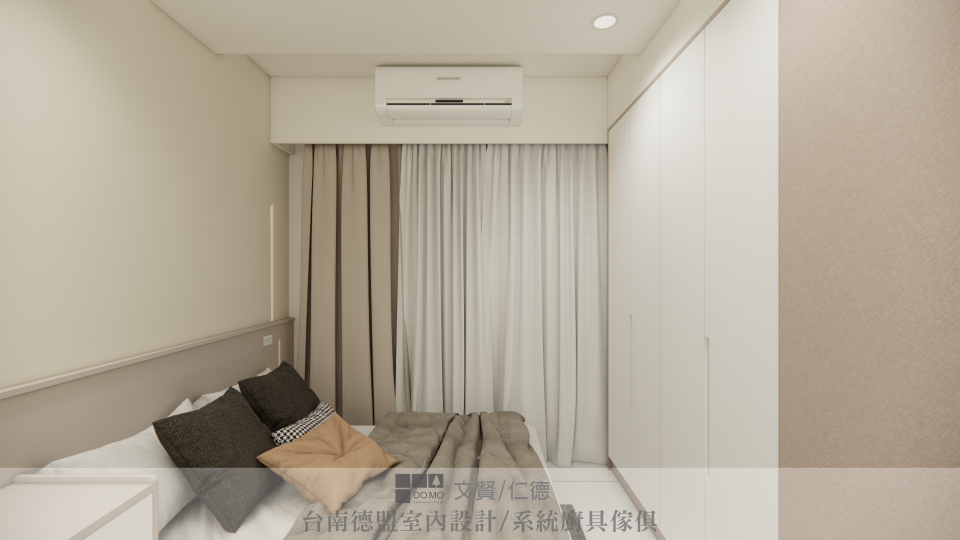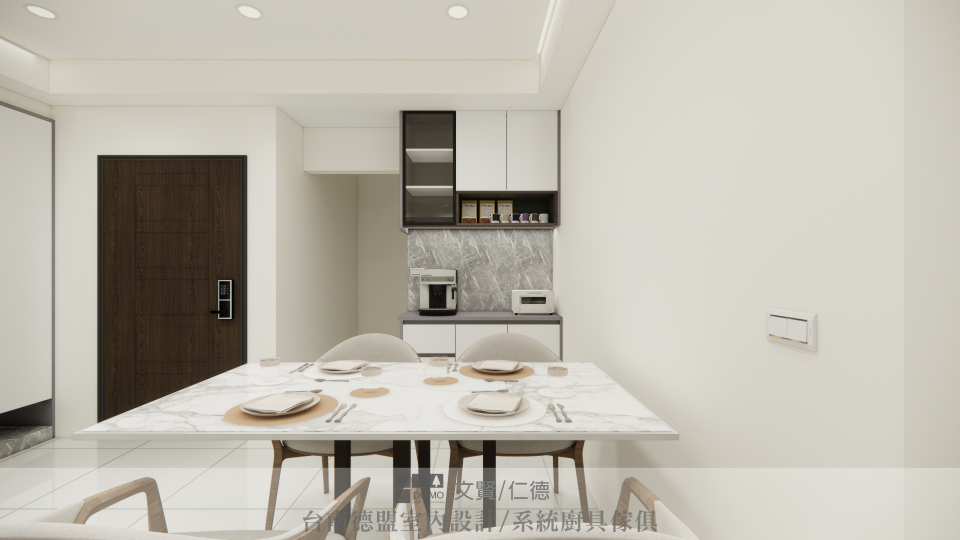 整體風格以內斂簡約為主,櫃體皆選用米白色、深淺奶灰色與胡桃木色搭配,堆砌出低調輕奢的韻味!