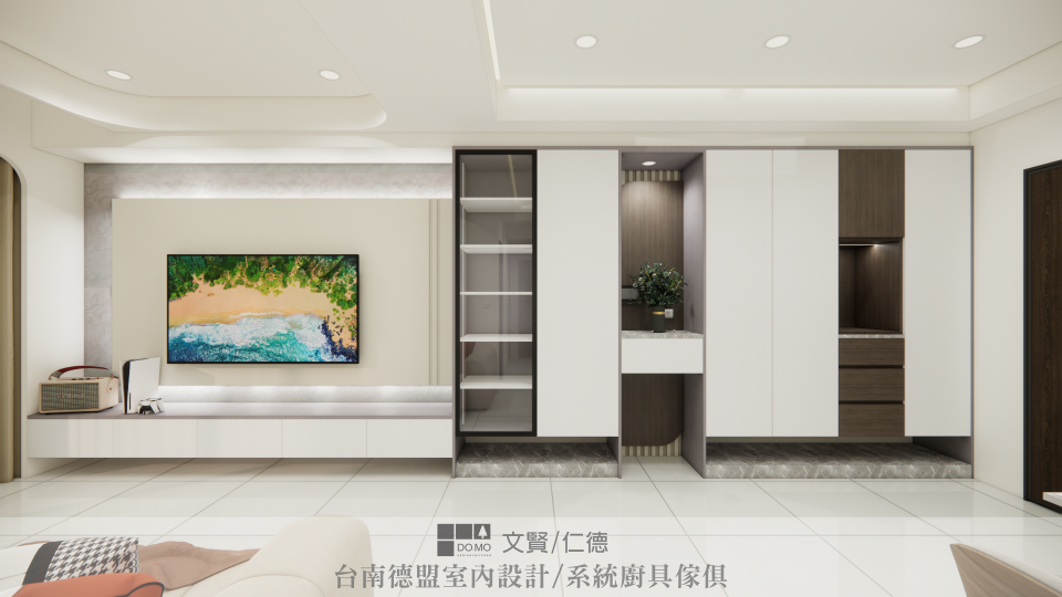 施作項目 ⏩室內設計、系統櫃、系統家具、客廳、臥室、司曼特漆牆、造型天花板