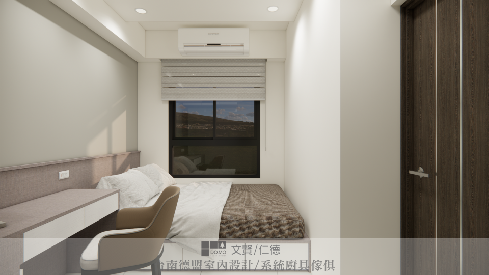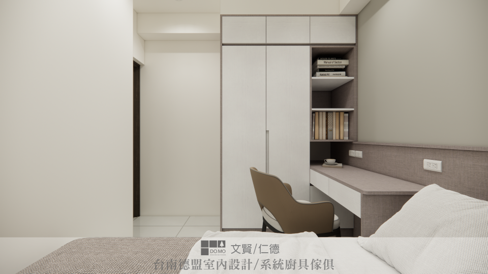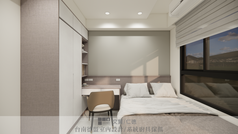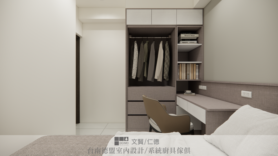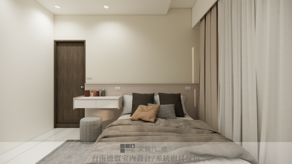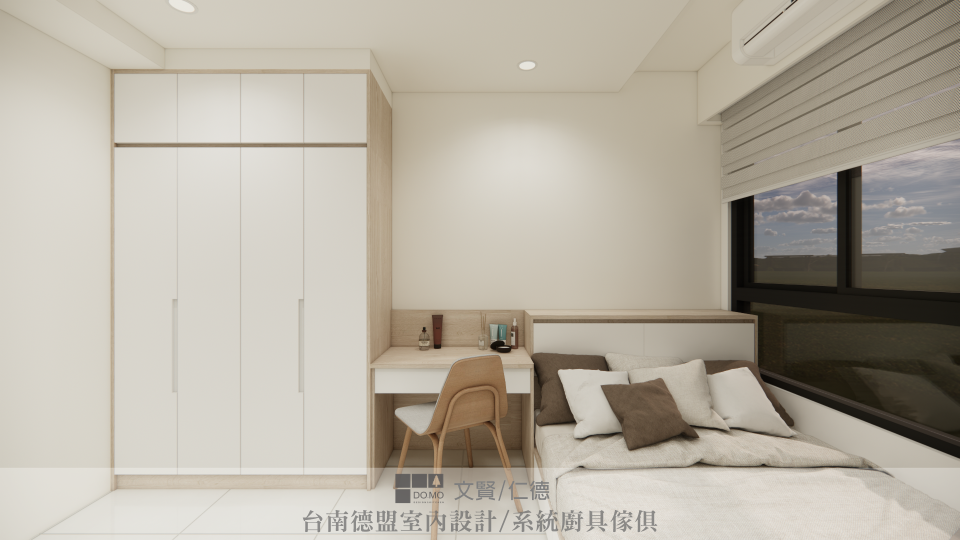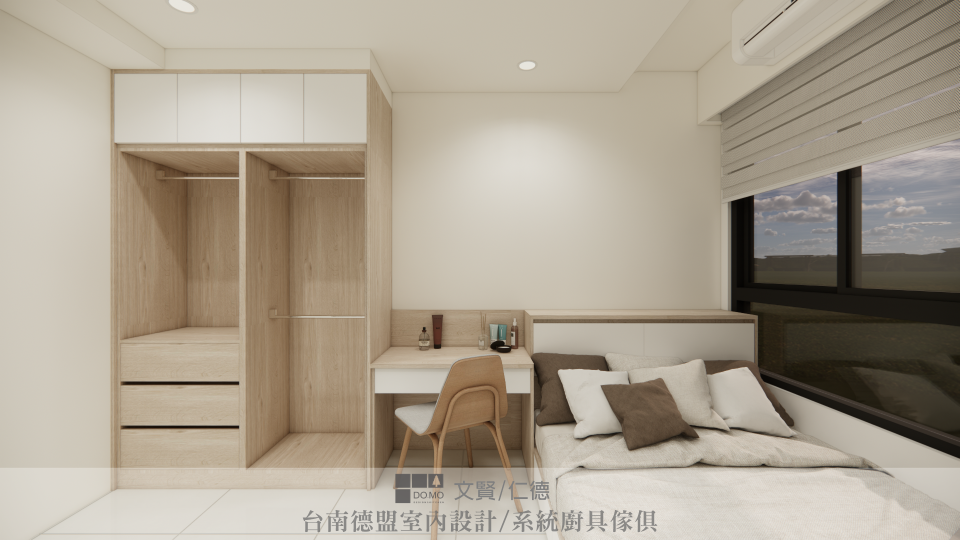 另外三間臥室,坪數較小,但在設計師的規劃下,應有的衣櫃與書桌或化妝台皆有,並盡可能保留出舒適的走動空間