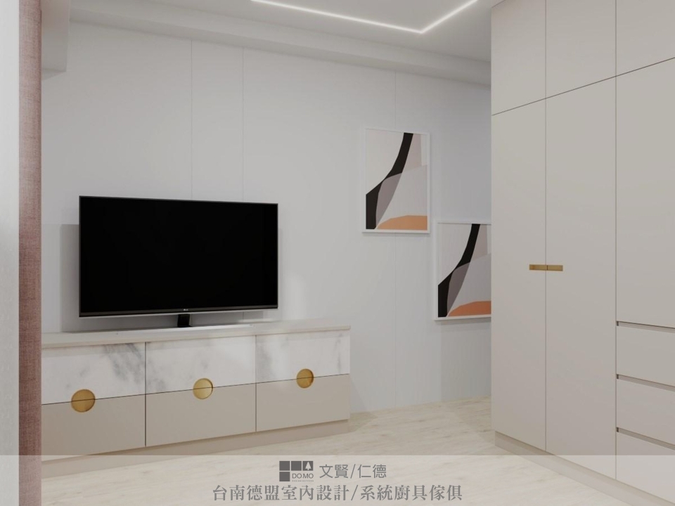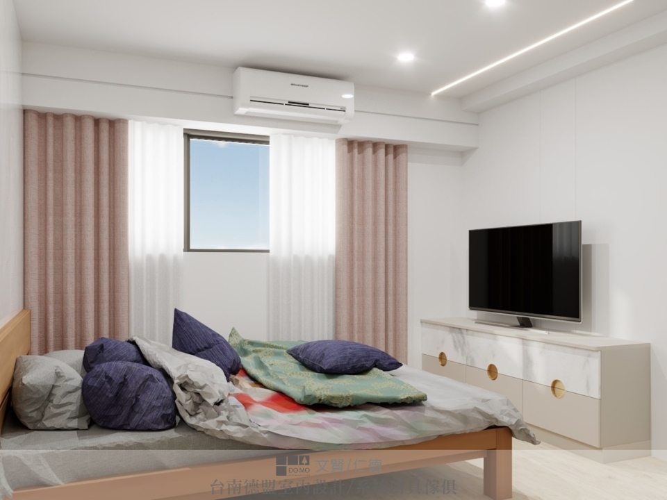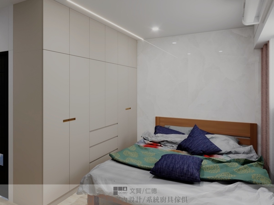 主臥與次臥皆選用輕柔色調來營造能放鬆休憩的私密空間。