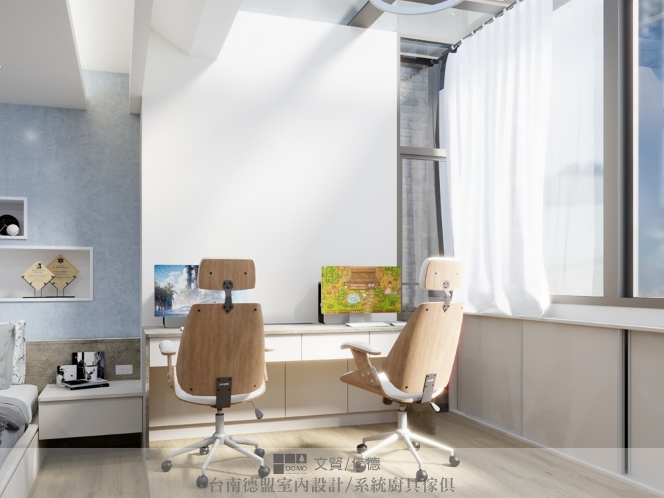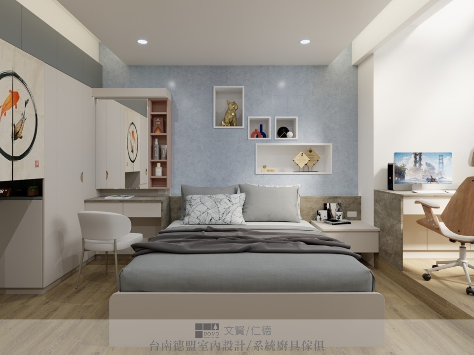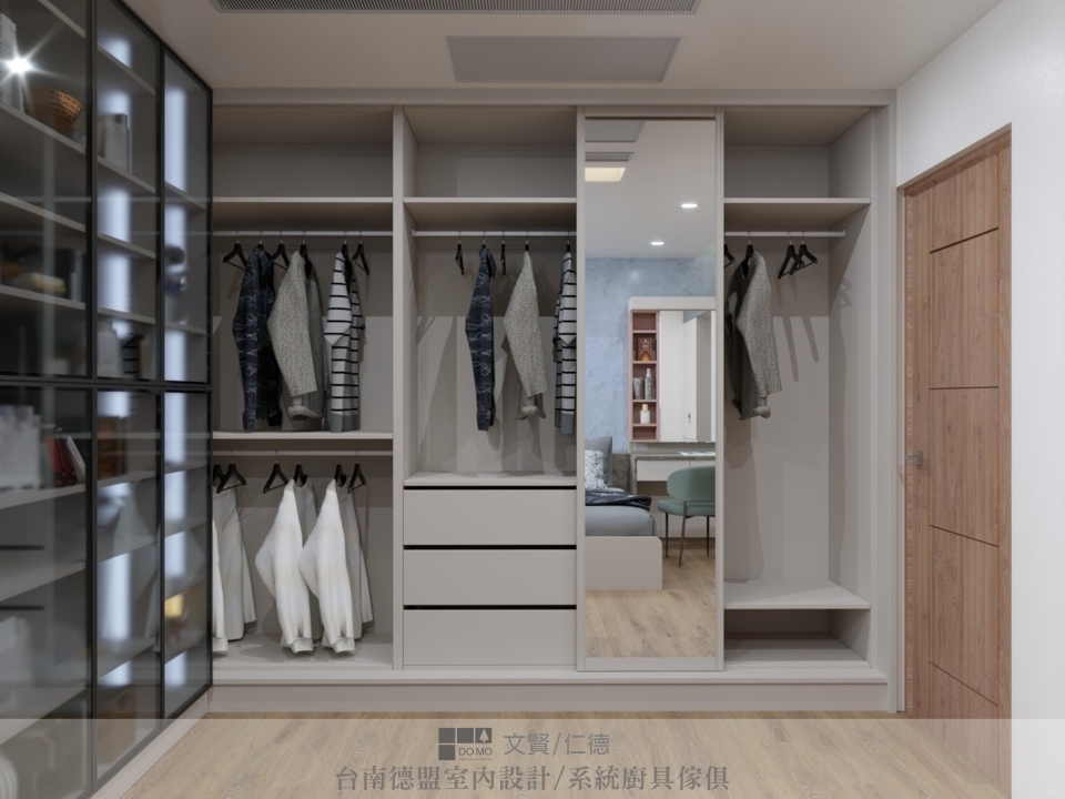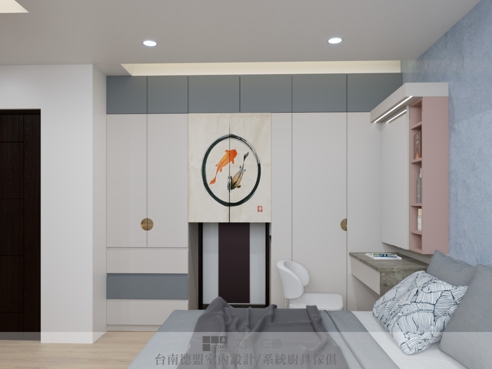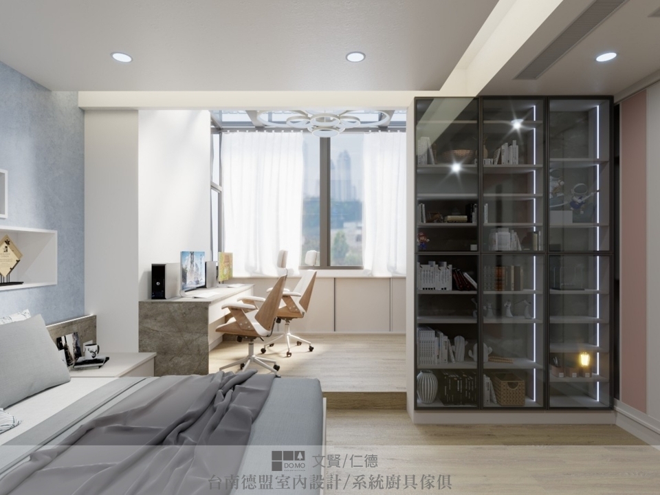 通常臥室的功能會盡量單純化,主要功能便是用來休憩。但也有像此案業主,私領域的坪數較大,因此有合併其他空間功能的需求。