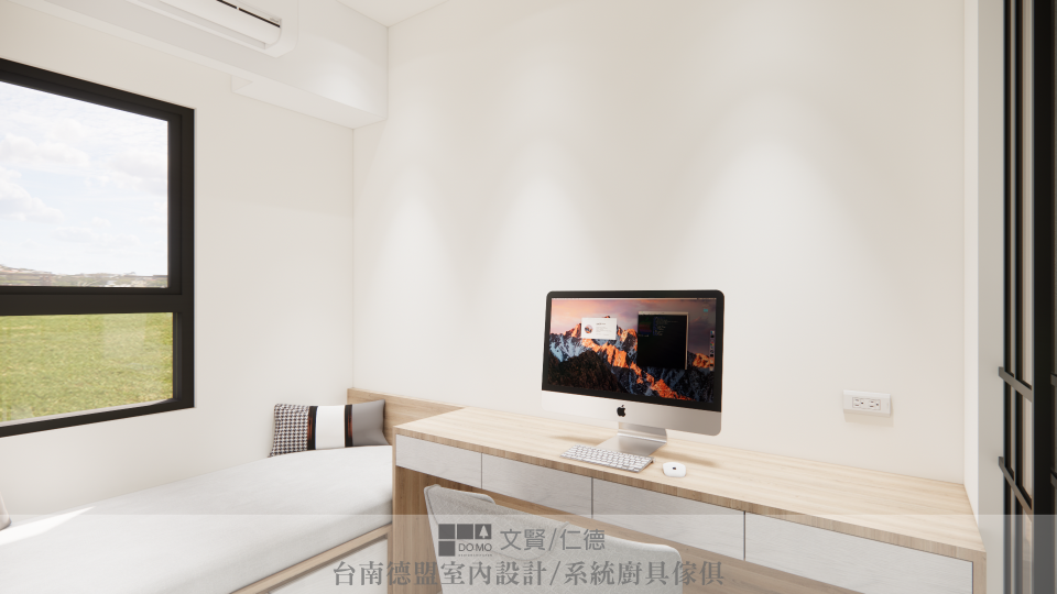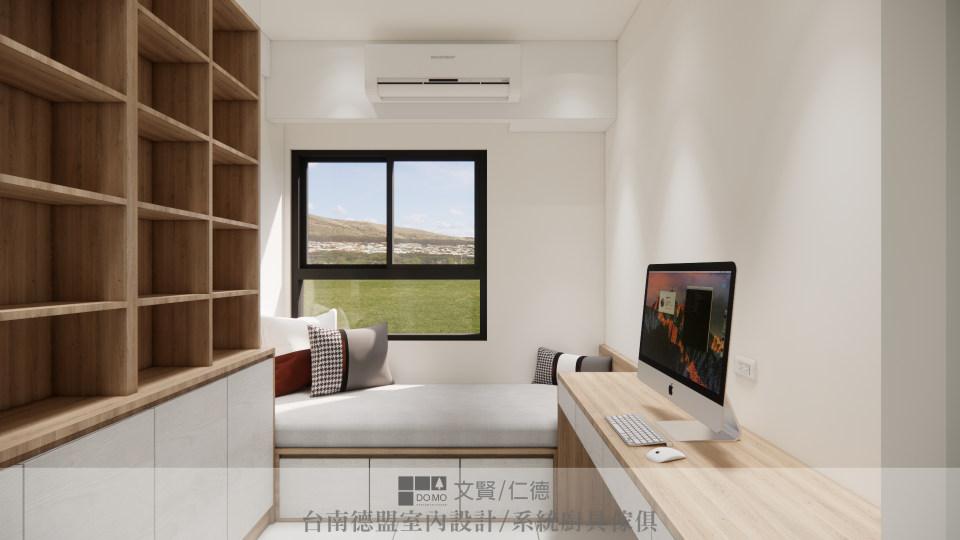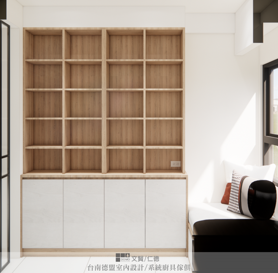 新設的隔間作為書房使用,除了書櫃、書桌以外,額外規劃了單人臥榻可供休憩,底部的抽屜更是提升收納功能。