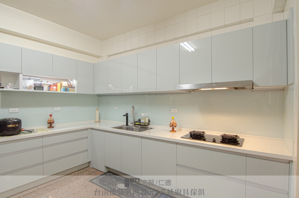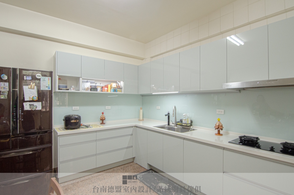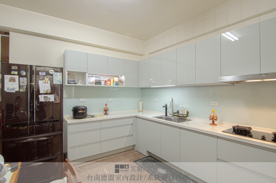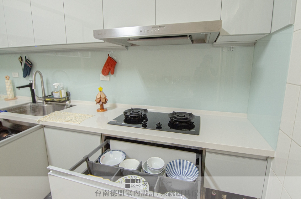 原本的舊廚具收納功能不足,門片也損壞故障,經設計師重新調整後,依照客人使用習慣改進了收納方式,桌上型飲水機改為廚下型,既節省空間也解決了需外購買飲用水的麻煩。