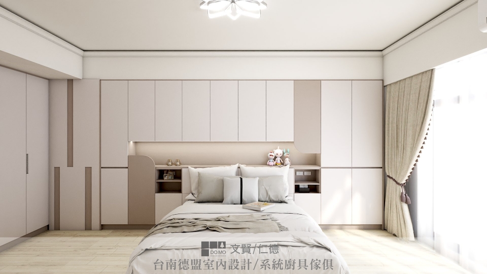 『整層樓都是私人領域,打造輕柔奶茶色調主臥室。』