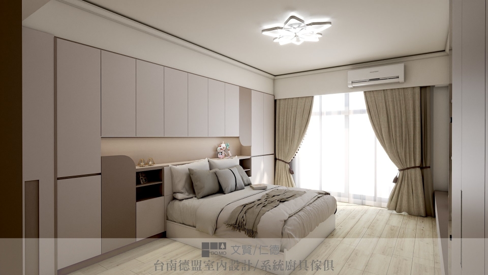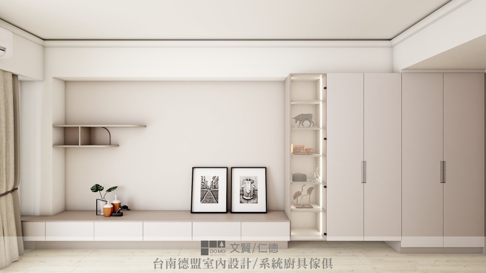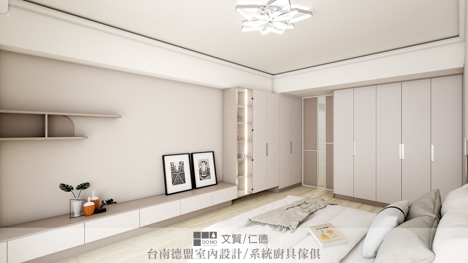 施作項目 ⏩室內設計、系統櫃、玻璃推拉門、電視牆、臥室、更衣室、SPC石塑地板、造型天花板
