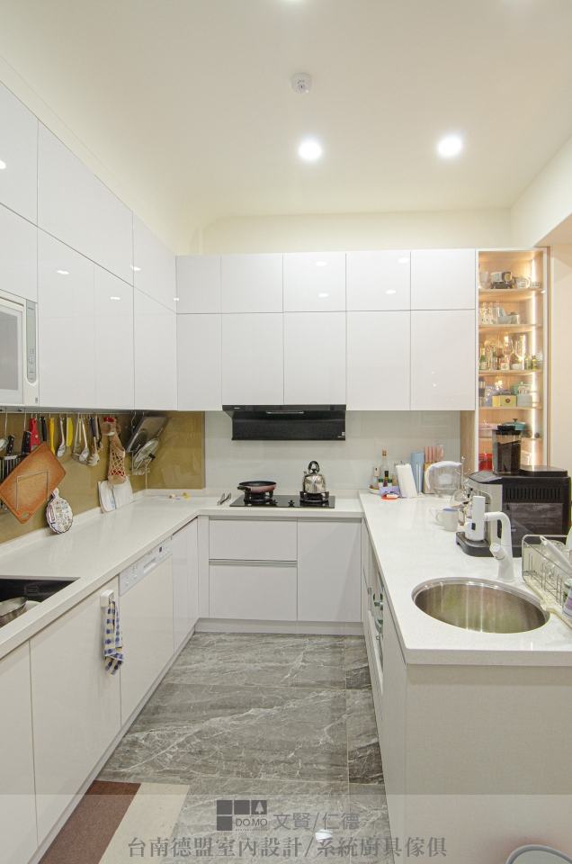 主要材料 ⏩EGGER-日本F4星級塑合板、奧地利BLUM緩衝後鈕、人造石、結晶鋼烤、烤漆玻璃、油漆、木工