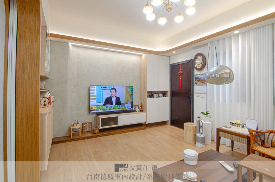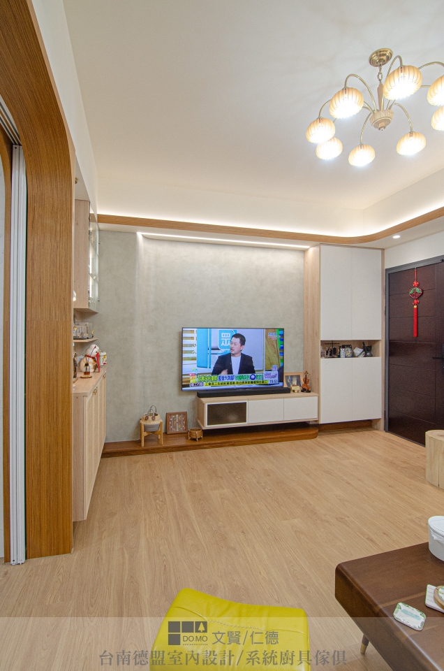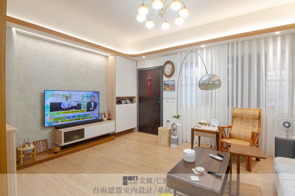 施作項目 ⏩室內設計、系統家具、系統櫃、系統櫥櫃、系統廚具、玻璃推拉門、玄關、客廳、臥室、更衣室、中島、司曼特漆牆、SPC石塑地板