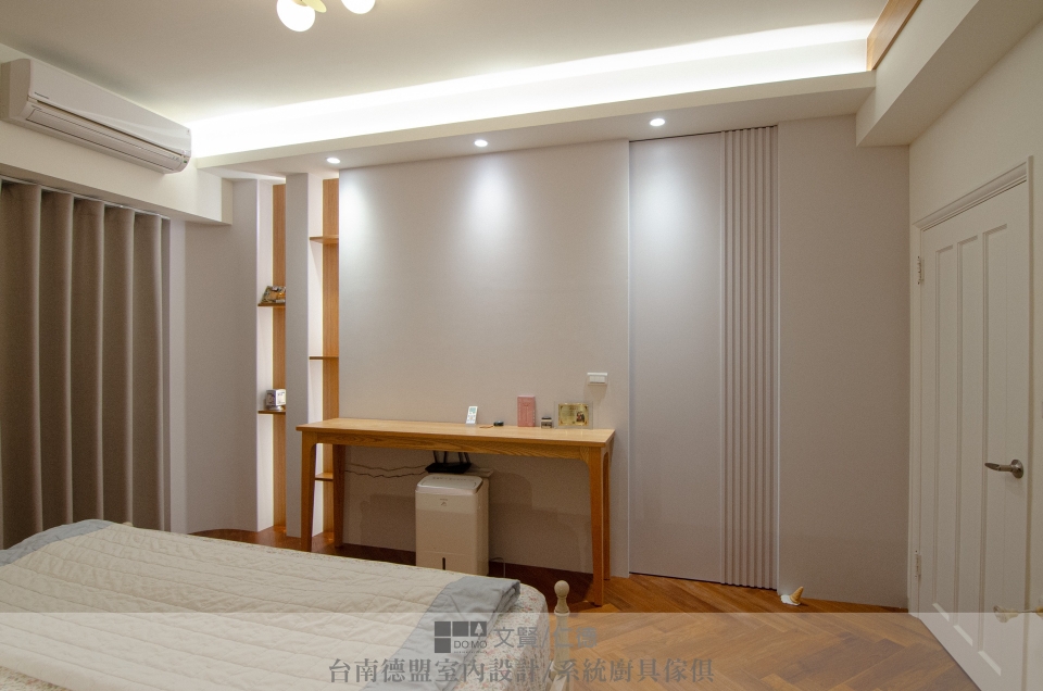 施作項目 ⏩室內設計、系統家具、系統櫃、系統櫥櫃、系統廚具、玻璃推拉門、玄關、客廳、臥室、更衣室、中島、司曼特漆牆、SPC石塑地板