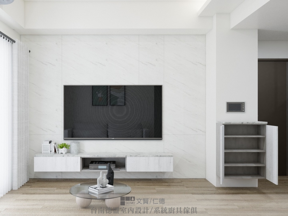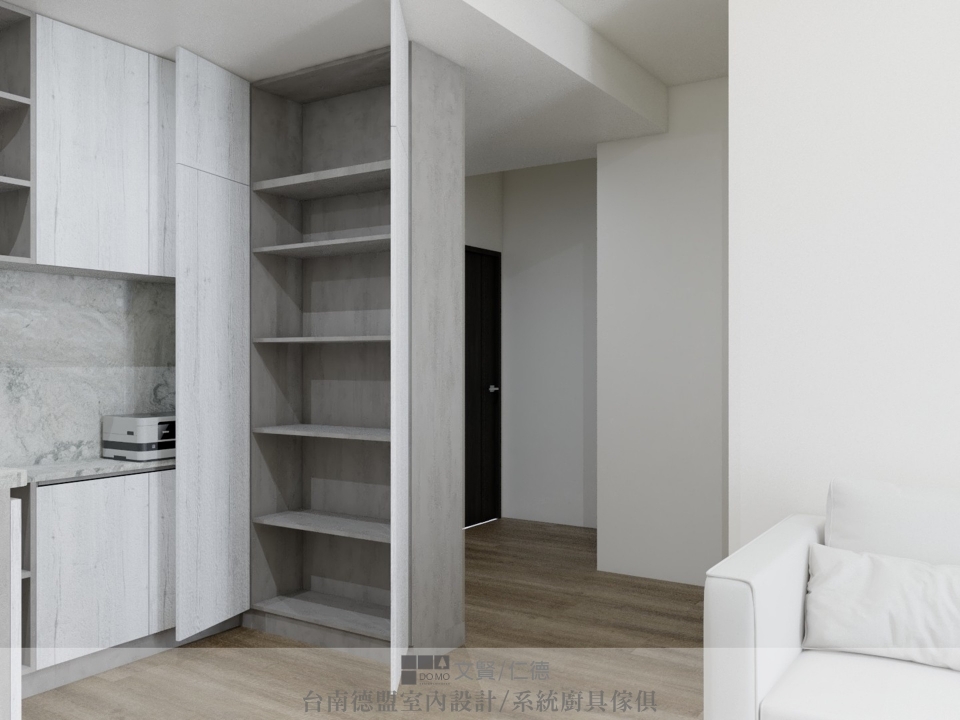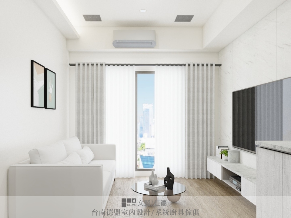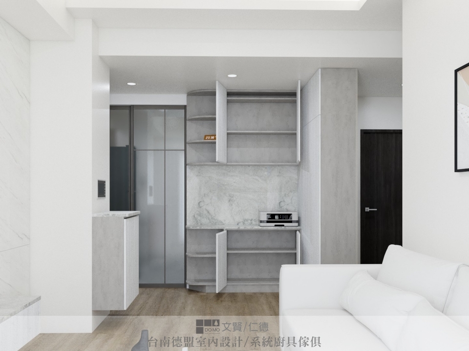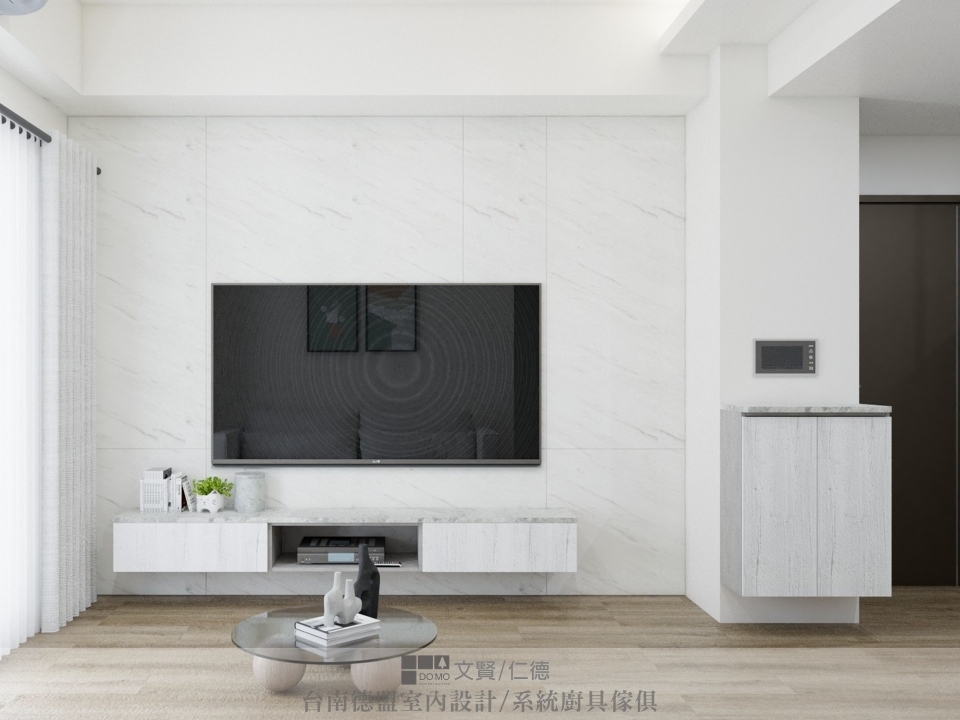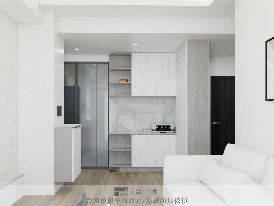 施作項目 ⏩ 室內設計、系統家具、系統櫃、客廳、玻璃推拉門、餐櫃