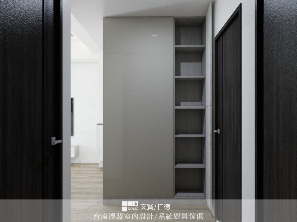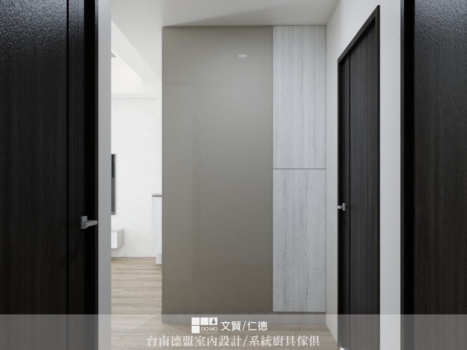 全屋選用黑、白、灰做為空間色彩主調,大面積的白色做基底,灰色搭配比例適宜,微量的黑色輕輕點綴卻不搶眼。