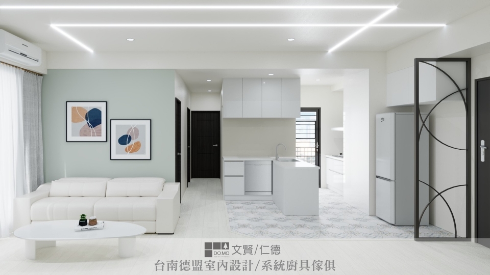 施作項目 ⏩ 室內設計、系統家具、廚具、中島、造型鐵件隔屏、造型天花板
