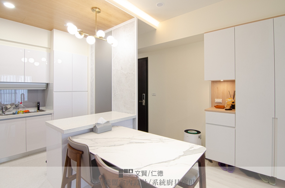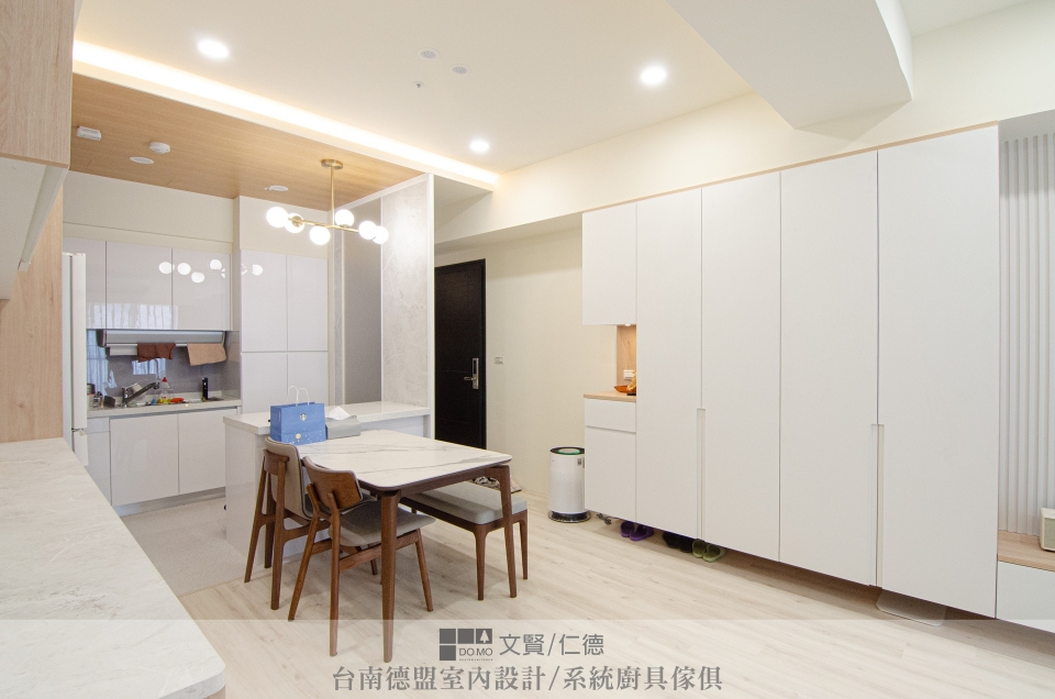 施作項目 ⏩室內設計、系統家具、系統櫃、系統櫥櫃、客廳、臥室、更衣室、廚房、中島、書桌、造型天花板