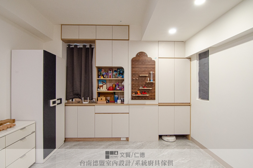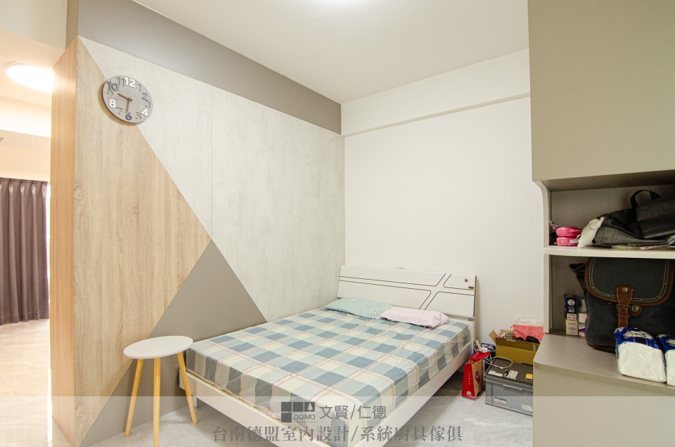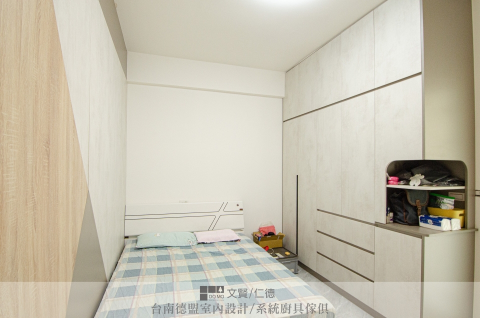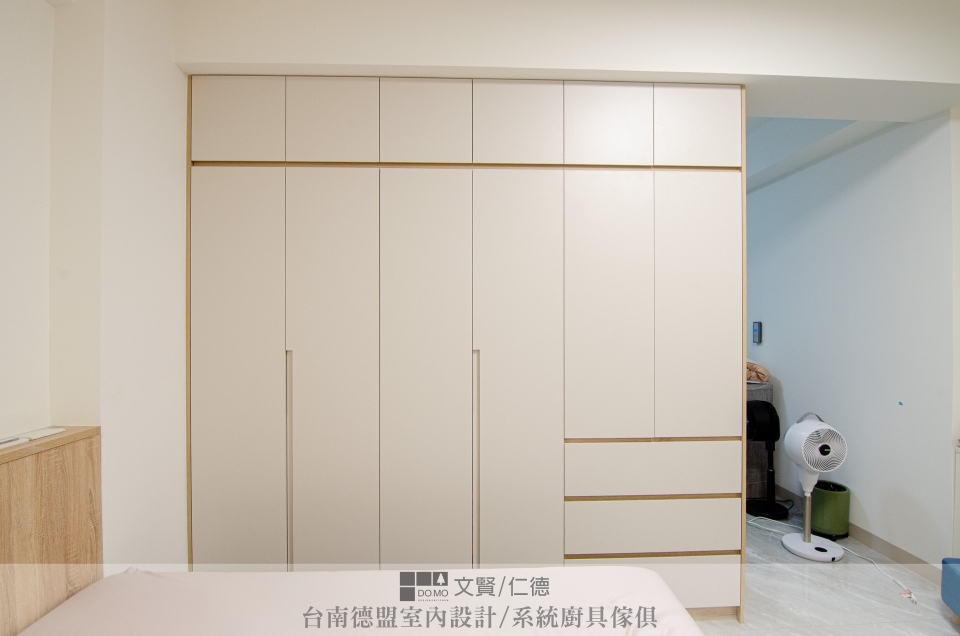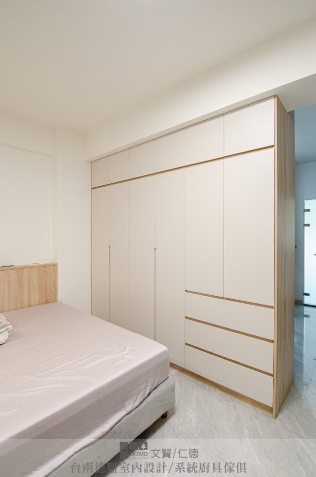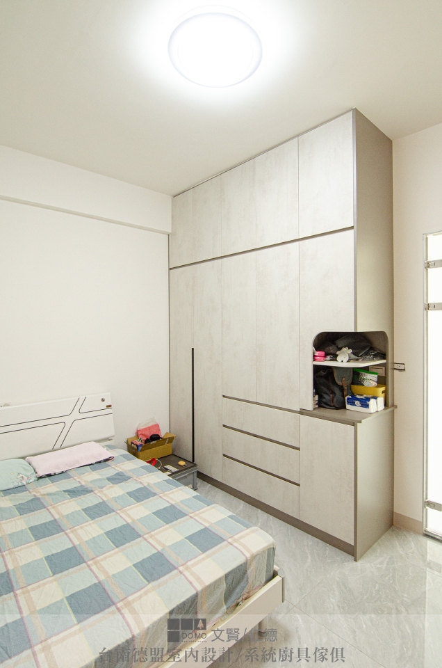施作項目 ⏩室內設計、系統櫃、系統家具、臥室、玻璃推拉門、造型天花板、司曼特漆牆、系統廚具、系統櫥櫃、中島、格柵