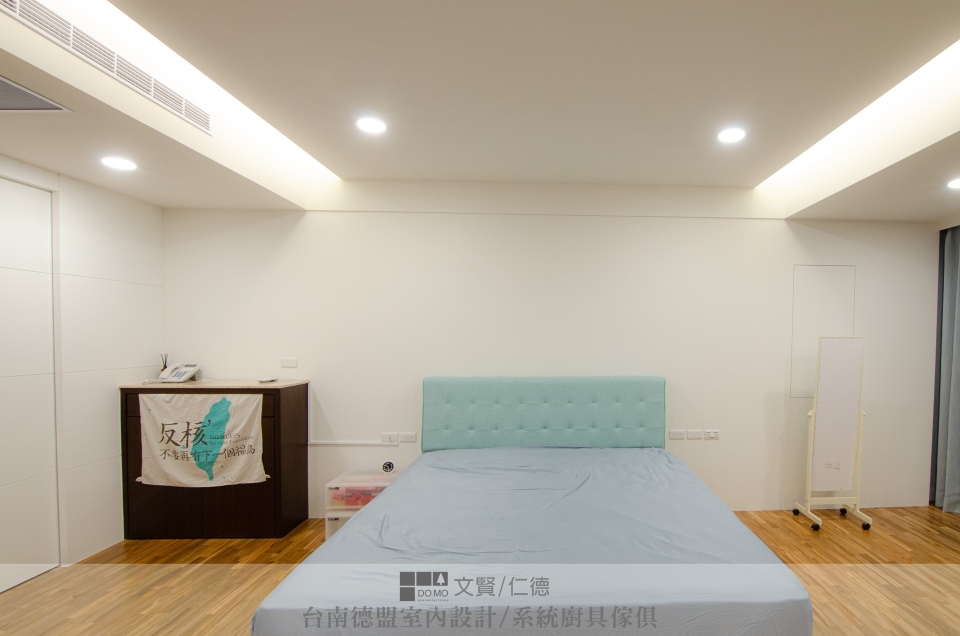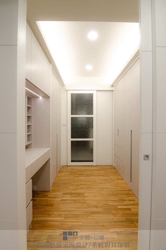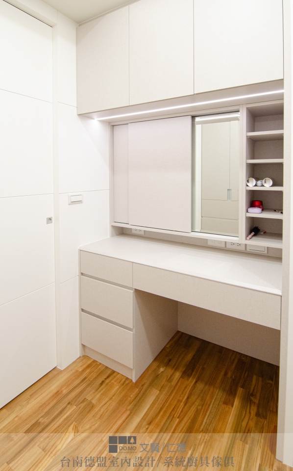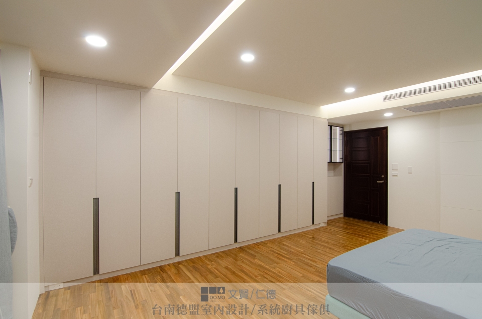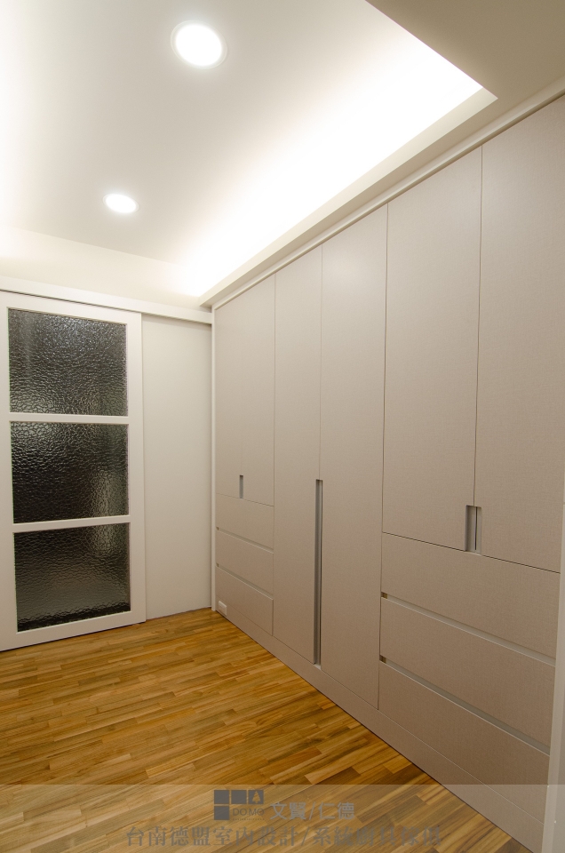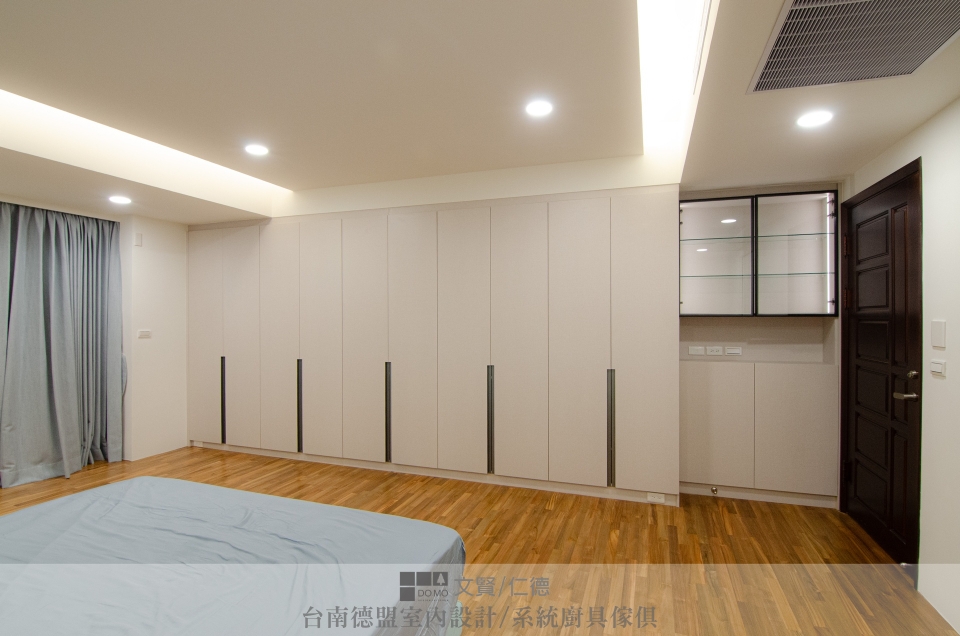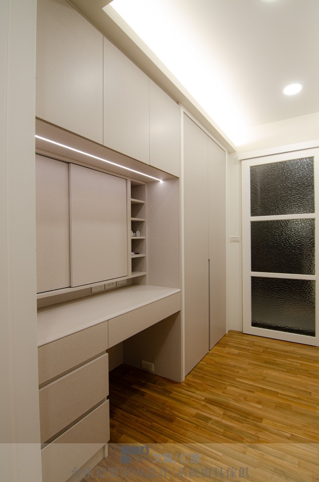 臥室、更衣室,均把深色系櫃子拆掉重做,一改原先深色系帶來的濃重,淺色系櫃體視覺上更加清爽、簡潔。