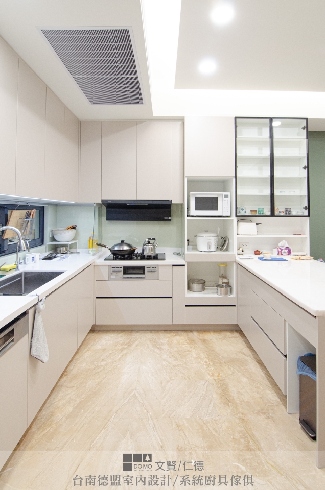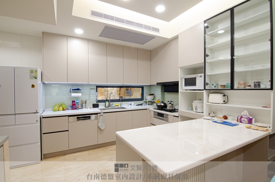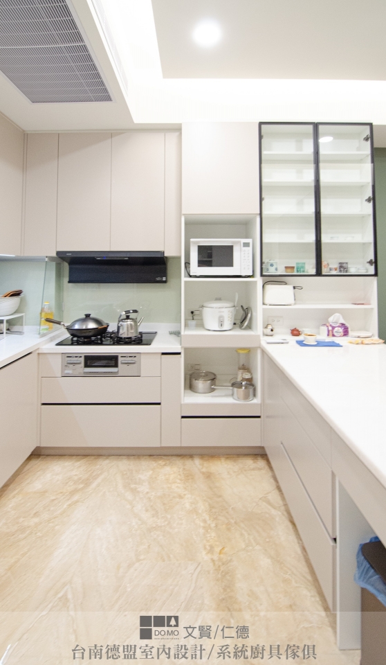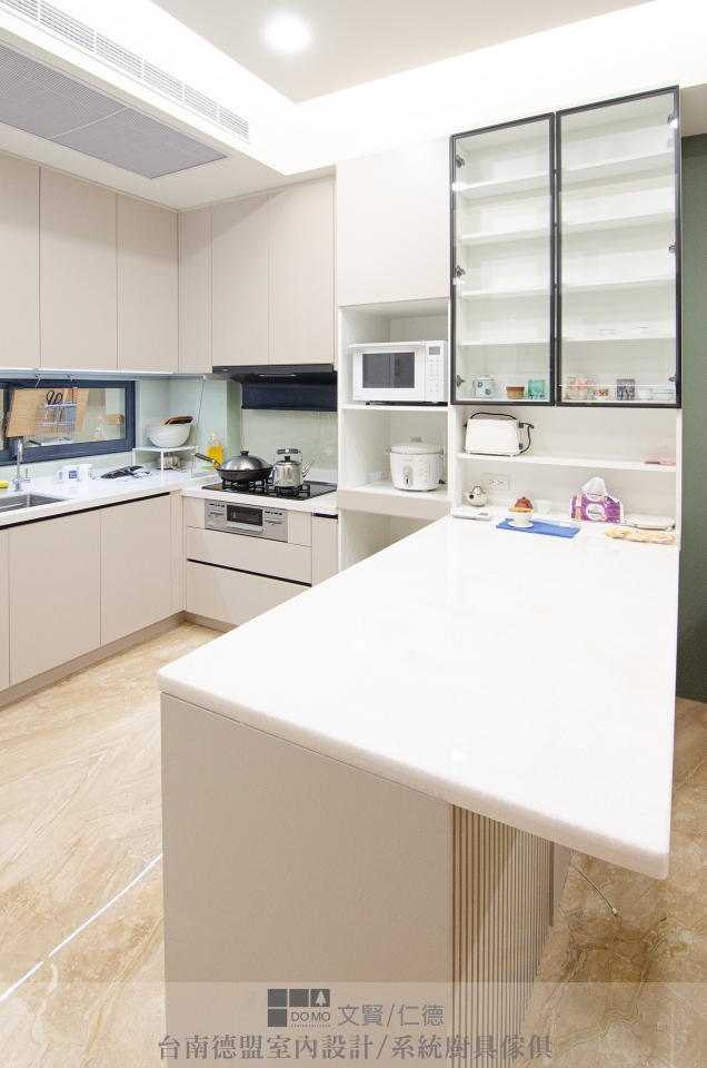 主要材料 ⏩EGGER-日本F4星級塑合板、奧地利BLUM緩衝後鈕、人造石、結晶鋼烤、烤漆玻璃、發泡板、長虹玻璃、鐵件