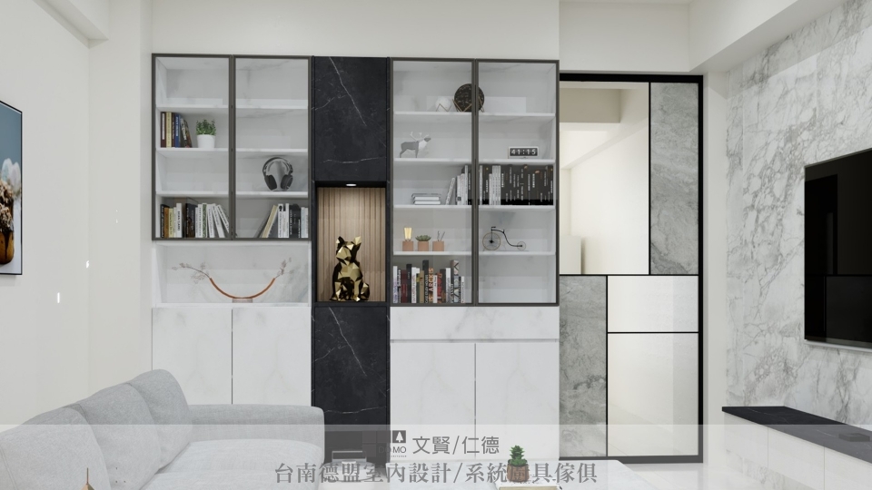 施作項目 ⏩ 室內設計、系統家具、系統櫃、鐵件玻璃拉門、客廳、衣櫃