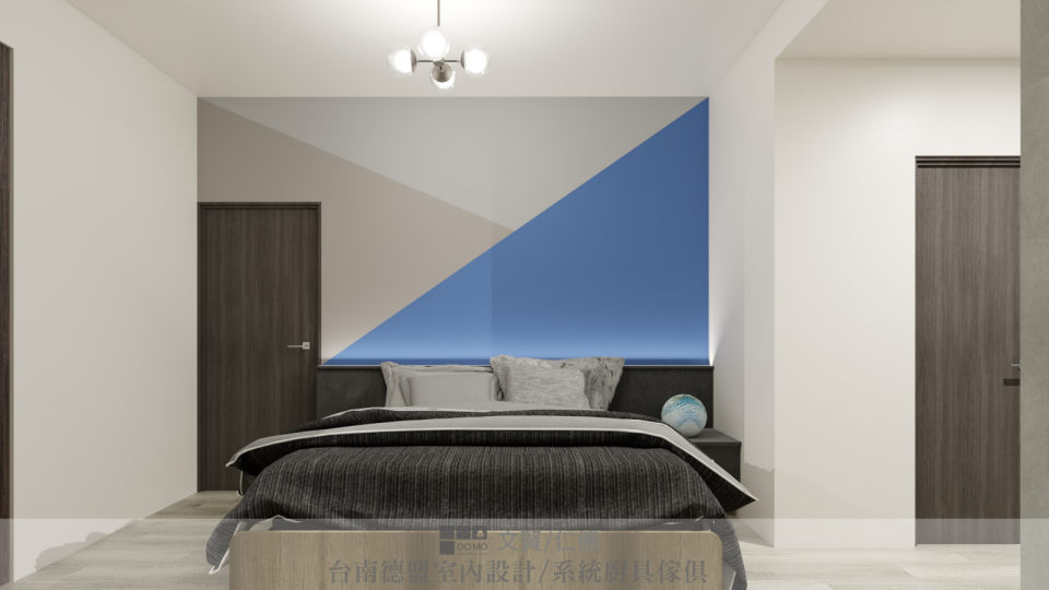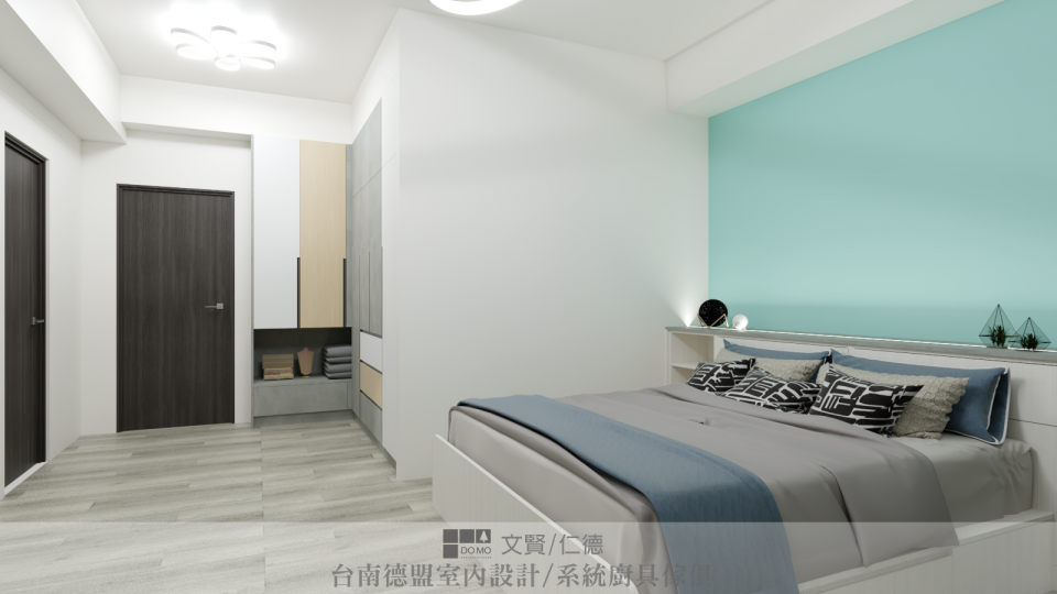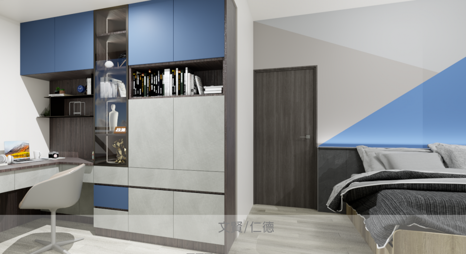 另外幾間臥室則依據臥室主人的不同而採用了稍微亮一點的色彩去規劃,提高了辨識度也增添輕鬆感。但不論如何的變化,都不脫離物件的設計大方向,維持了統一和諧感。