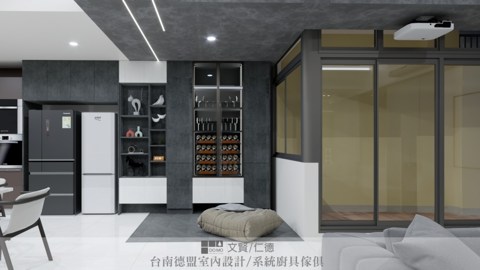 施作項目 ⏩ 室內設計、系統家具、系統櫃、客廳、臥室、玄關、衛浴、更衣室、書桌、造型天花板、玻璃推拉門
