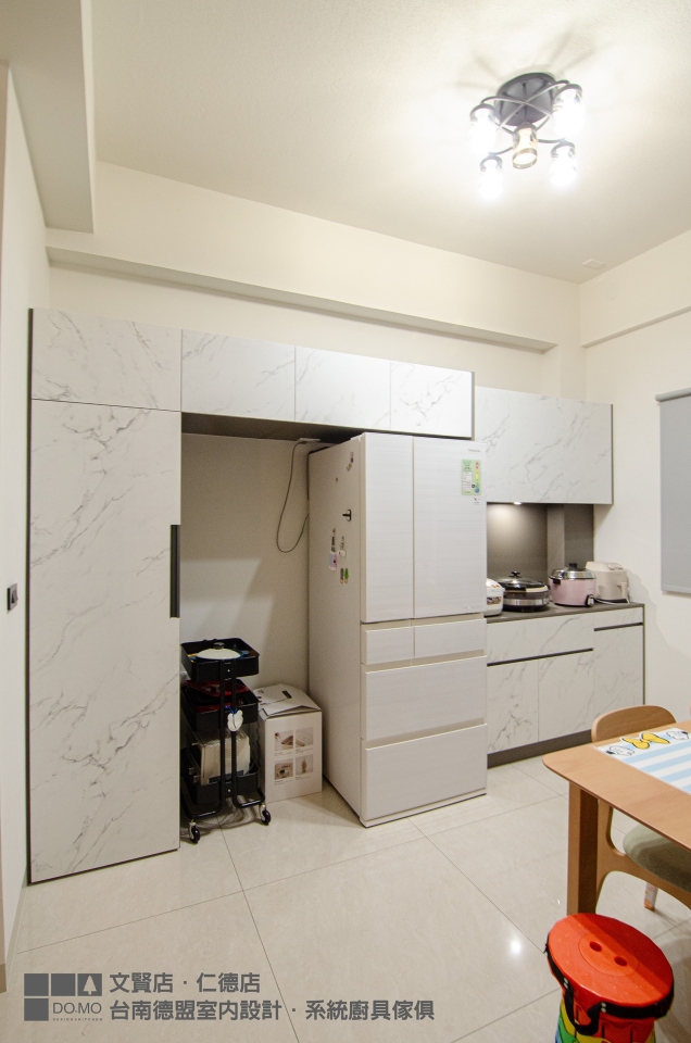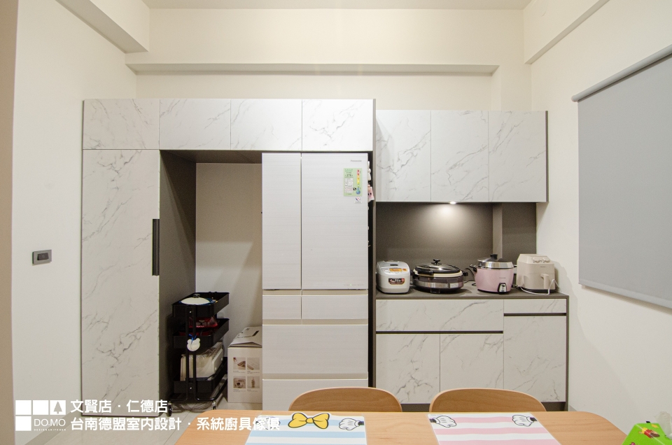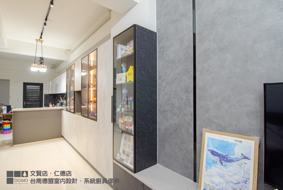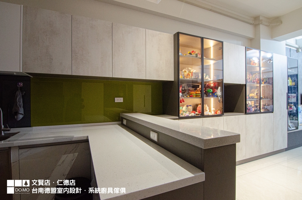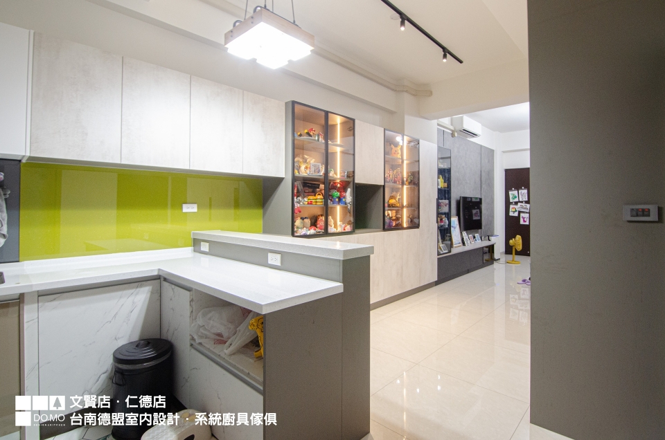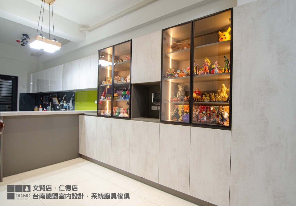 主要材料 ⏩EGGER-日本F4星級塑合板、奧地利BLUM緩衝後鈕、人造石、烤漆玻璃、油漆、木工、司曼特漆牆