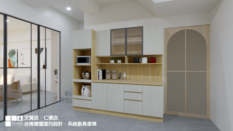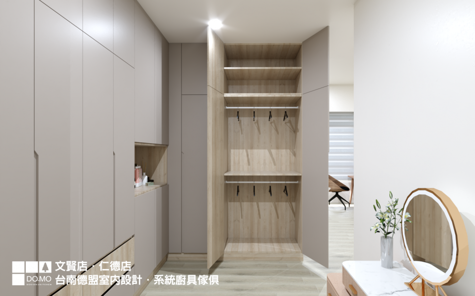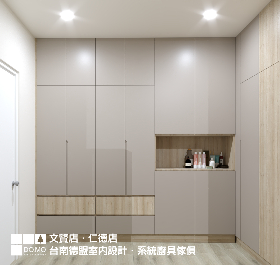 主要材料 ⏩ EGGER-日本F4星級塑合板、奧地利BLUM緩衝後鈕、木工、司曼特漆牆、格柵