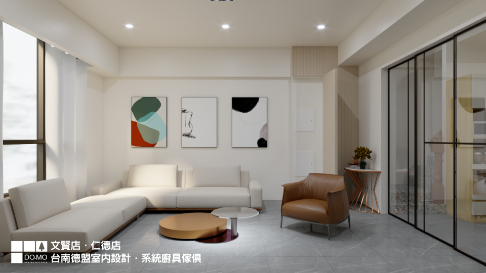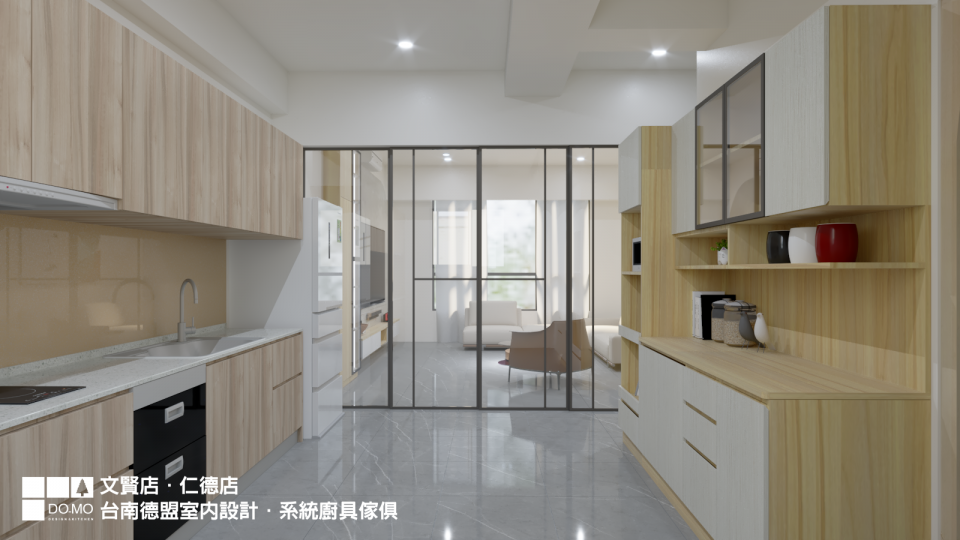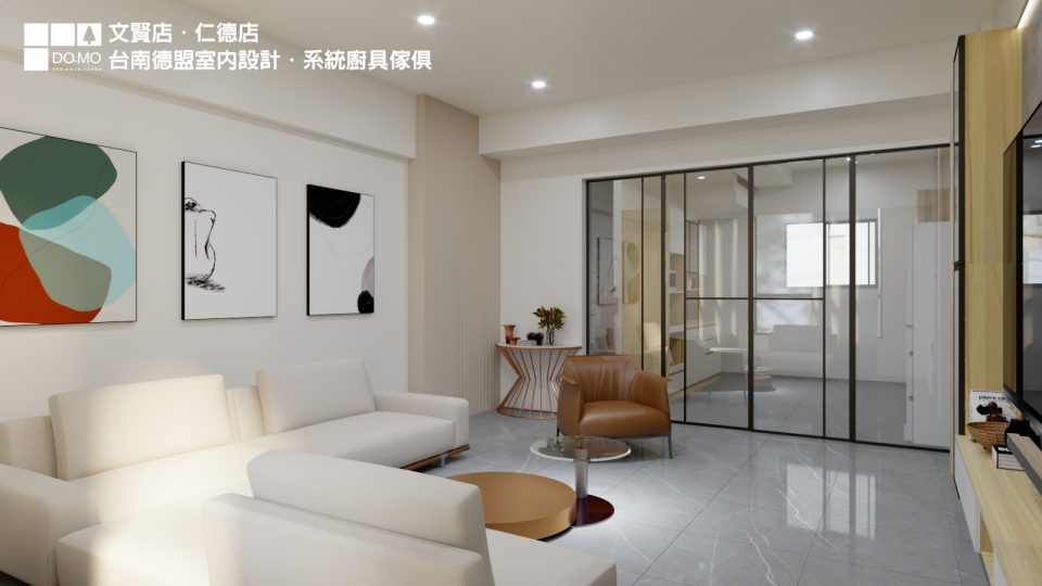 施作項目 ⏩ 室內設計、系統家具、系統櫃、客廳、臥室、玻璃推拉門、隱藏電箱門