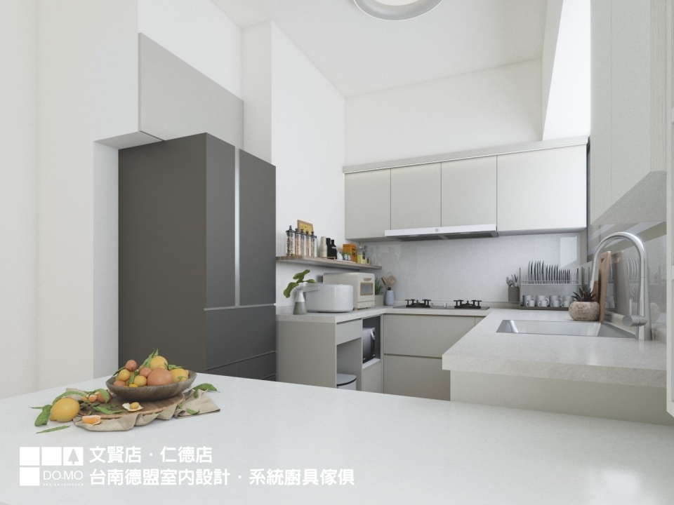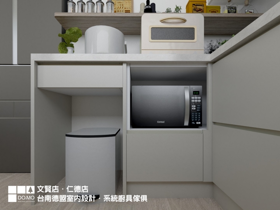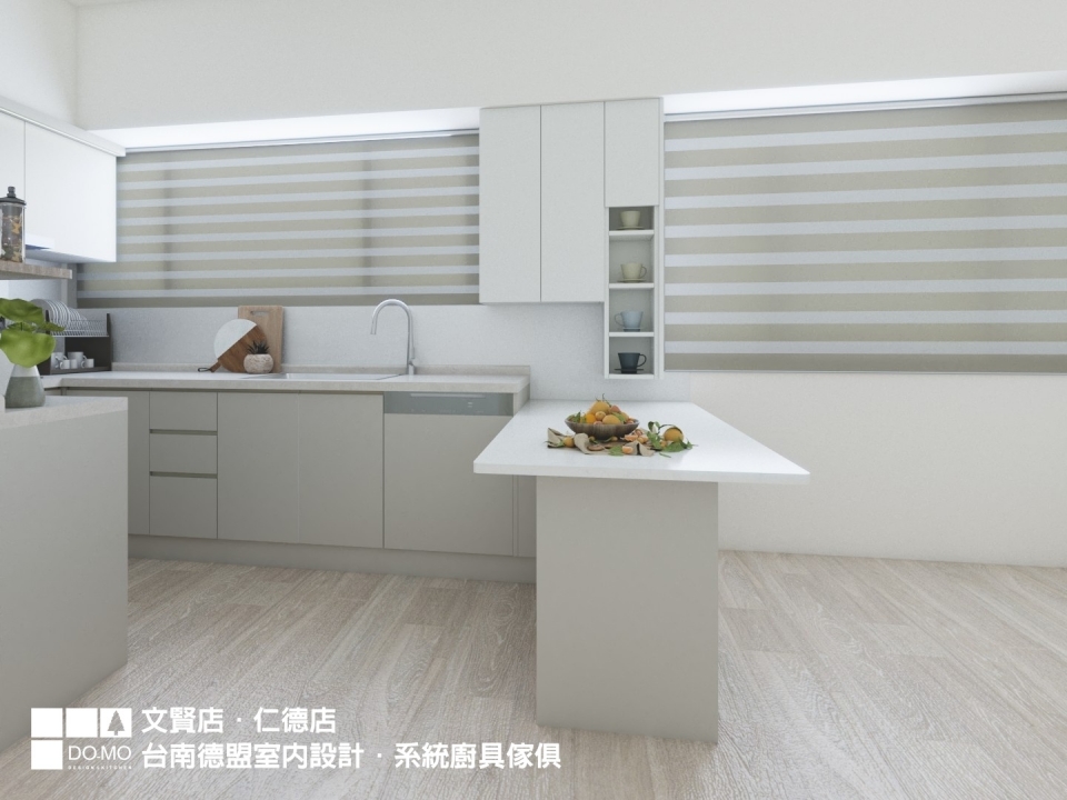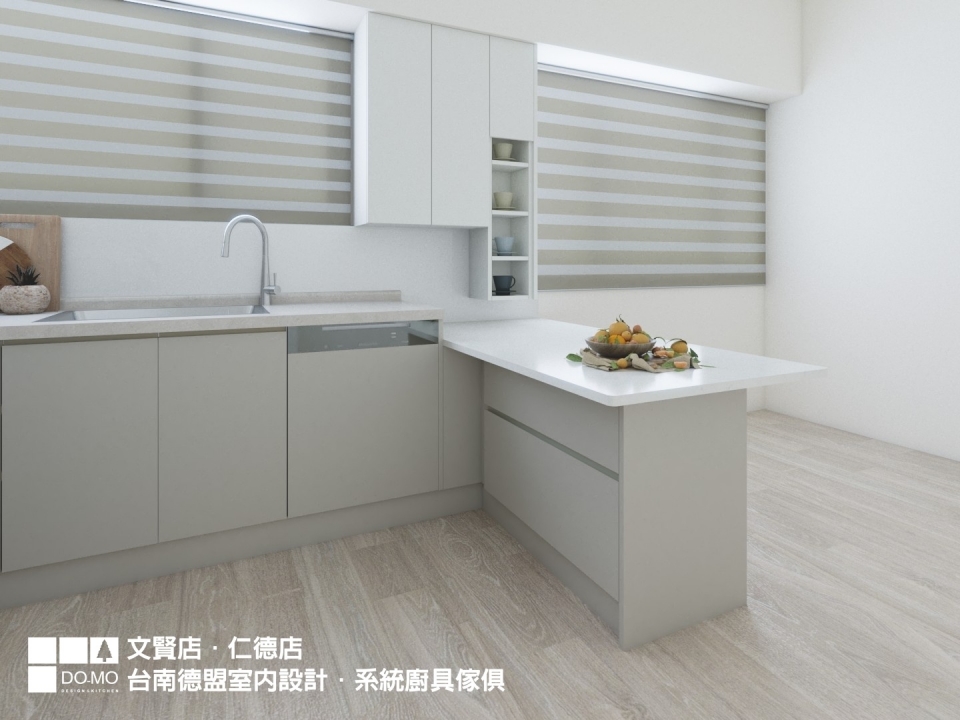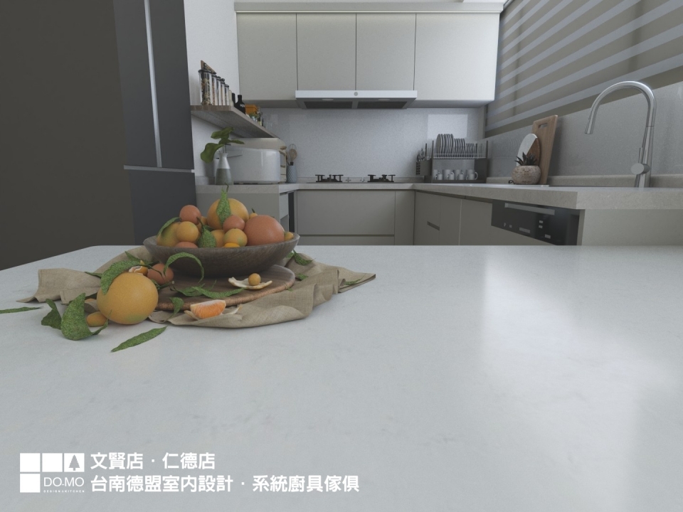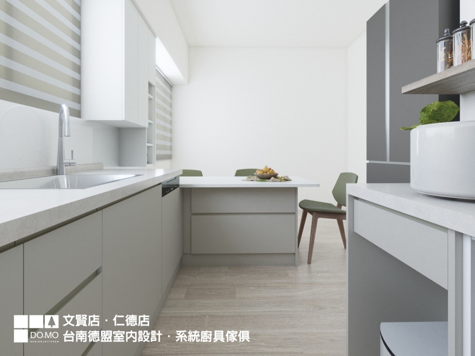 主要材料 ⏩ EGGER-日本F4星級塑合板、奧地利BLUM緩衝後鈕、人造石、霧面結晶鋼烤