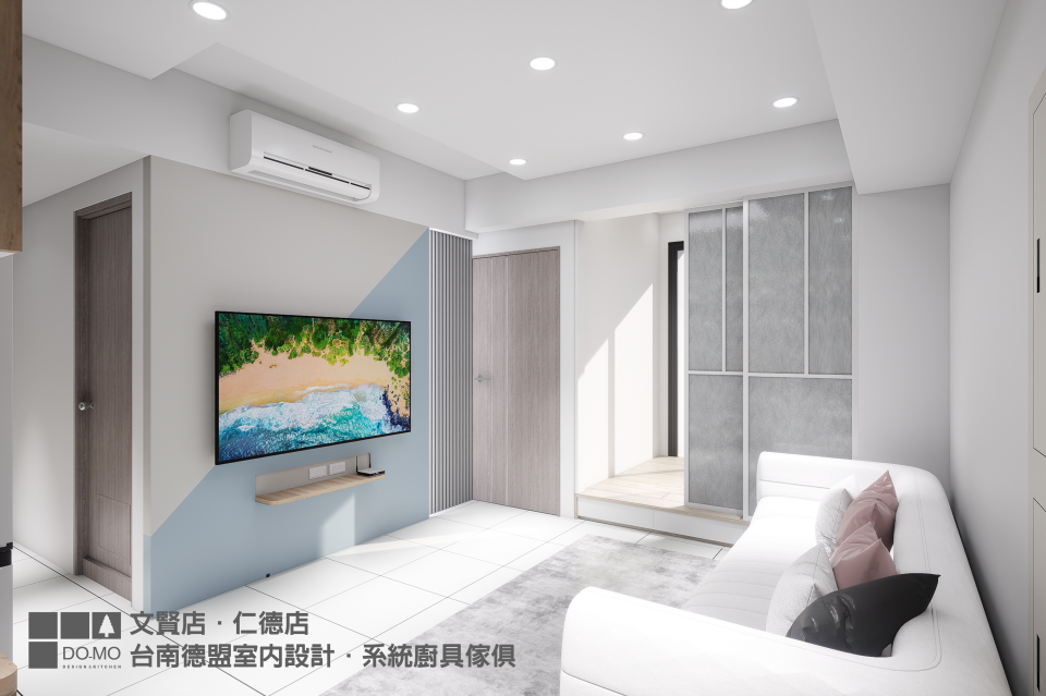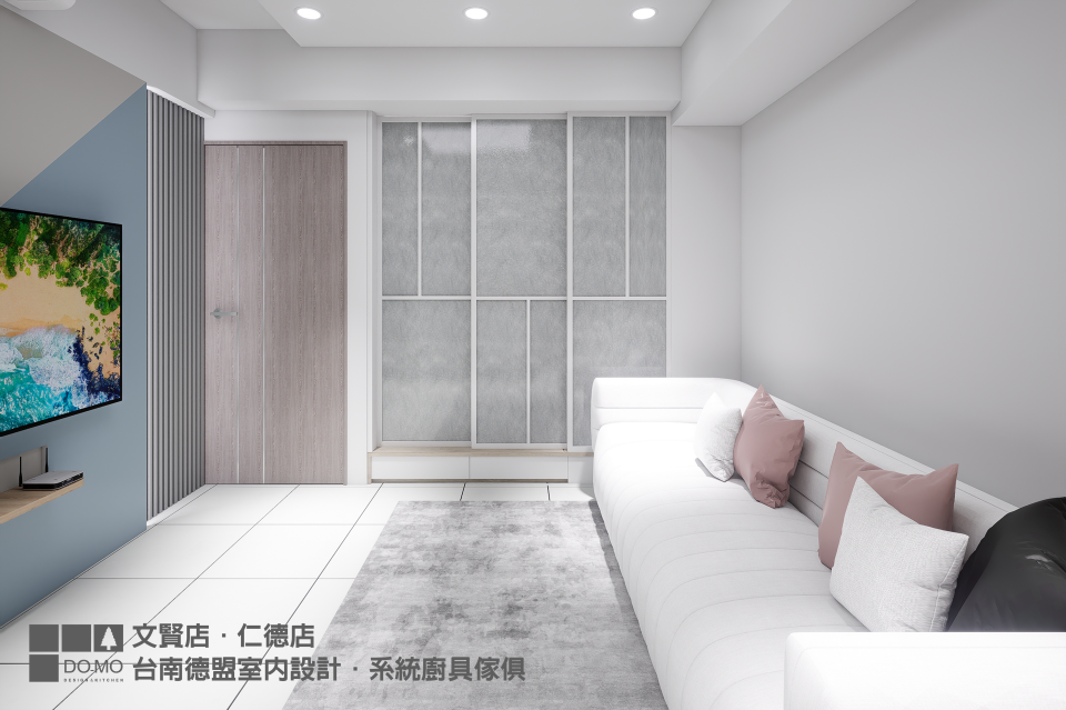 施作項目 ⏩室內設計、系統家具、系統櫃、系統櫥櫃、客廳、玻璃推拉門、和室、衣櫃