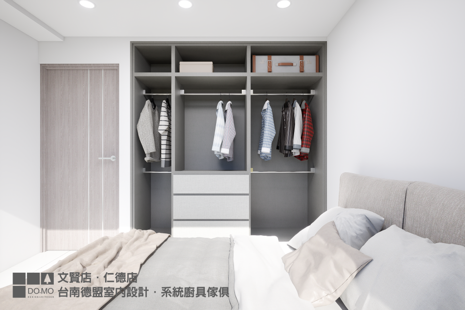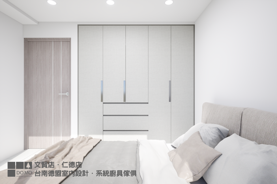 1+1房的格局條件較為有限,小一房的坪數較小,因此業主決定規劃成和室彈性使用,主臥則只施作衣櫃,保留足夠的活動空間。