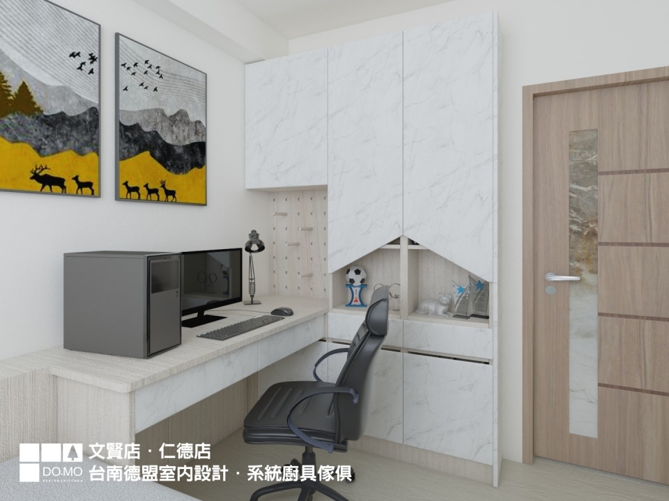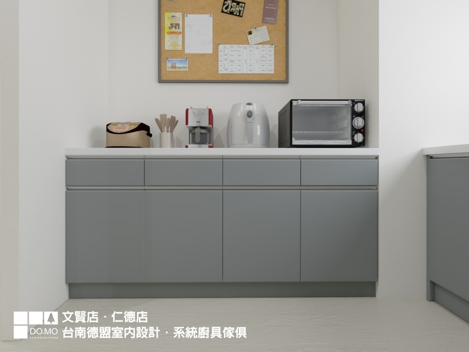 主要材料 ⏩ EGGER-日本F4星級塑合板、奧地利BLUM緩衝後鈕、木工、司曼特漆、超耐磨木地板、洞洞板