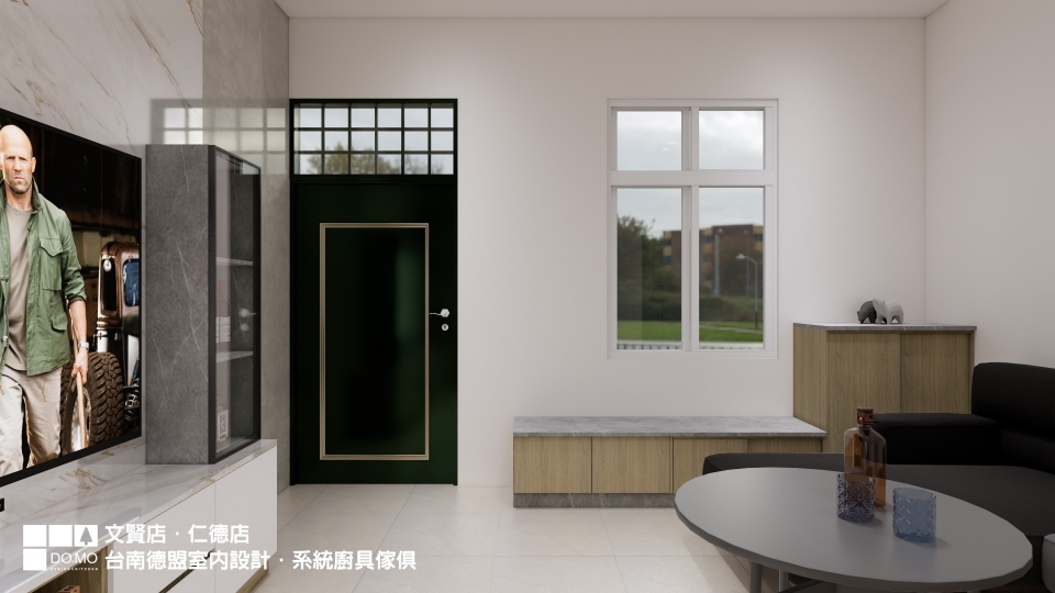 施作項目 ⏩ 舊屋翻新、室內設計、系統家具、系統櫃、客廳、書桌、臥榻、電視牆