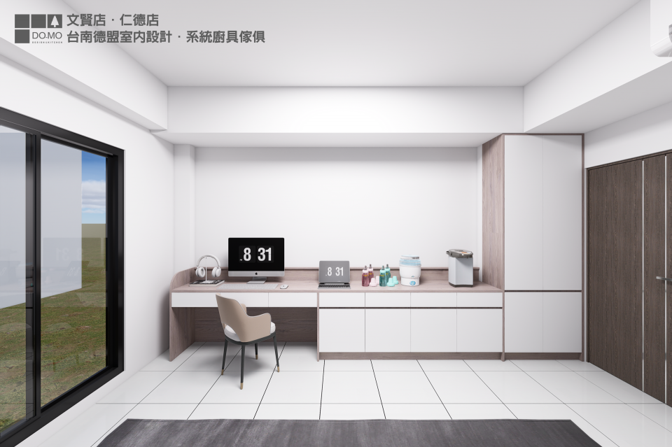 施作項目 ⏩室內設計、系統櫃、系統家具、玻璃推拉門、廚具、系統櫥櫃、電腦桌、工作桌、客廳、臥室、廚房、更衣室