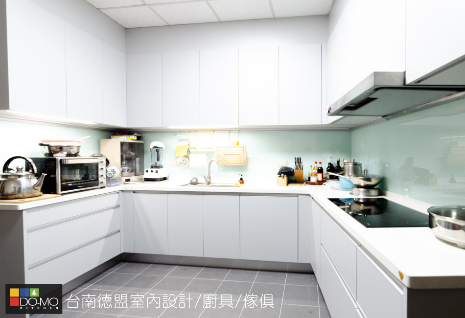 上櫃僅設計隔板以及收納櫃,隔板上可以擺飾常用的調味料或者鍋具,簡單的組合讓設計更俐落,使用上跟美感都有大大的加分~