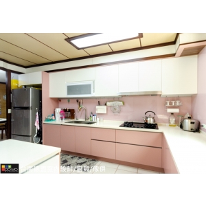 翻修老舊廚房空間,注入溫柔粉嫩的簡約風格